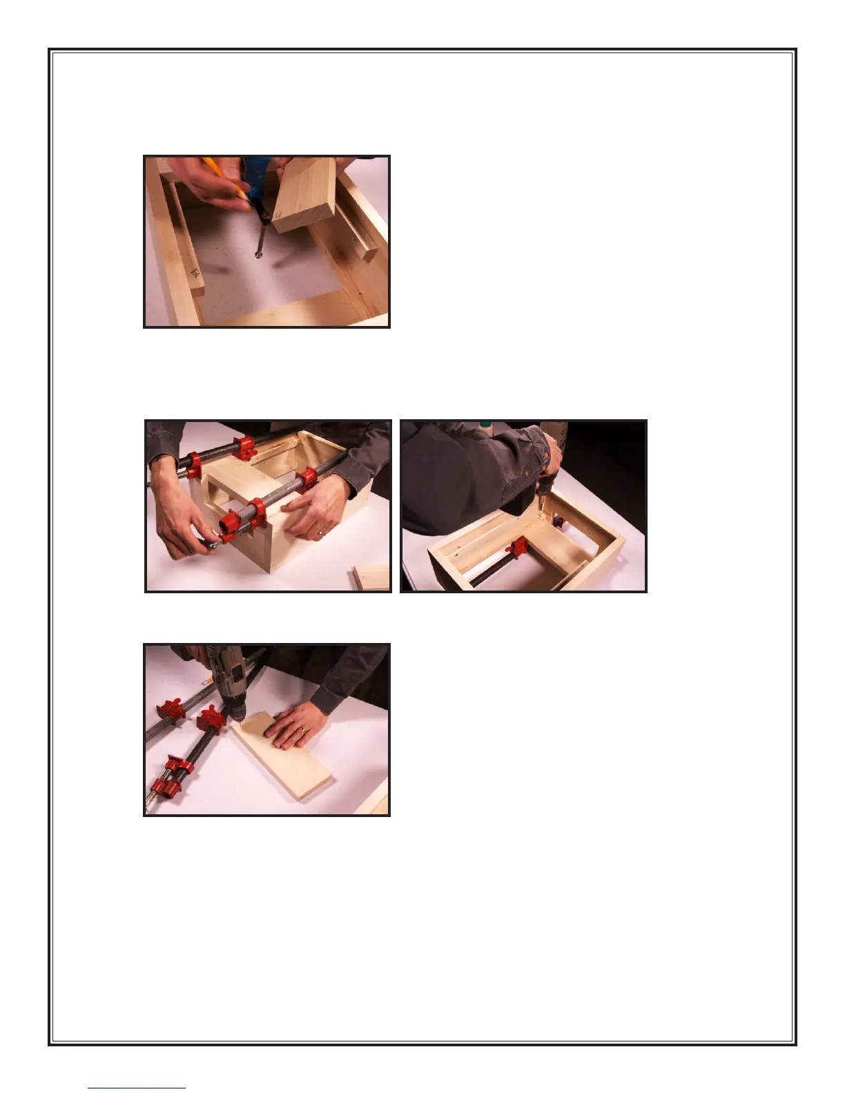 41. Installing the Front: Use both clamps to squeeze the Front tight against the cabinet Top.