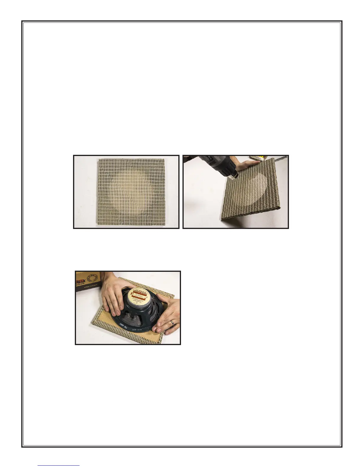 the grill cloth; move closer if necessary. Move from the center of the baffle outward, in ever-