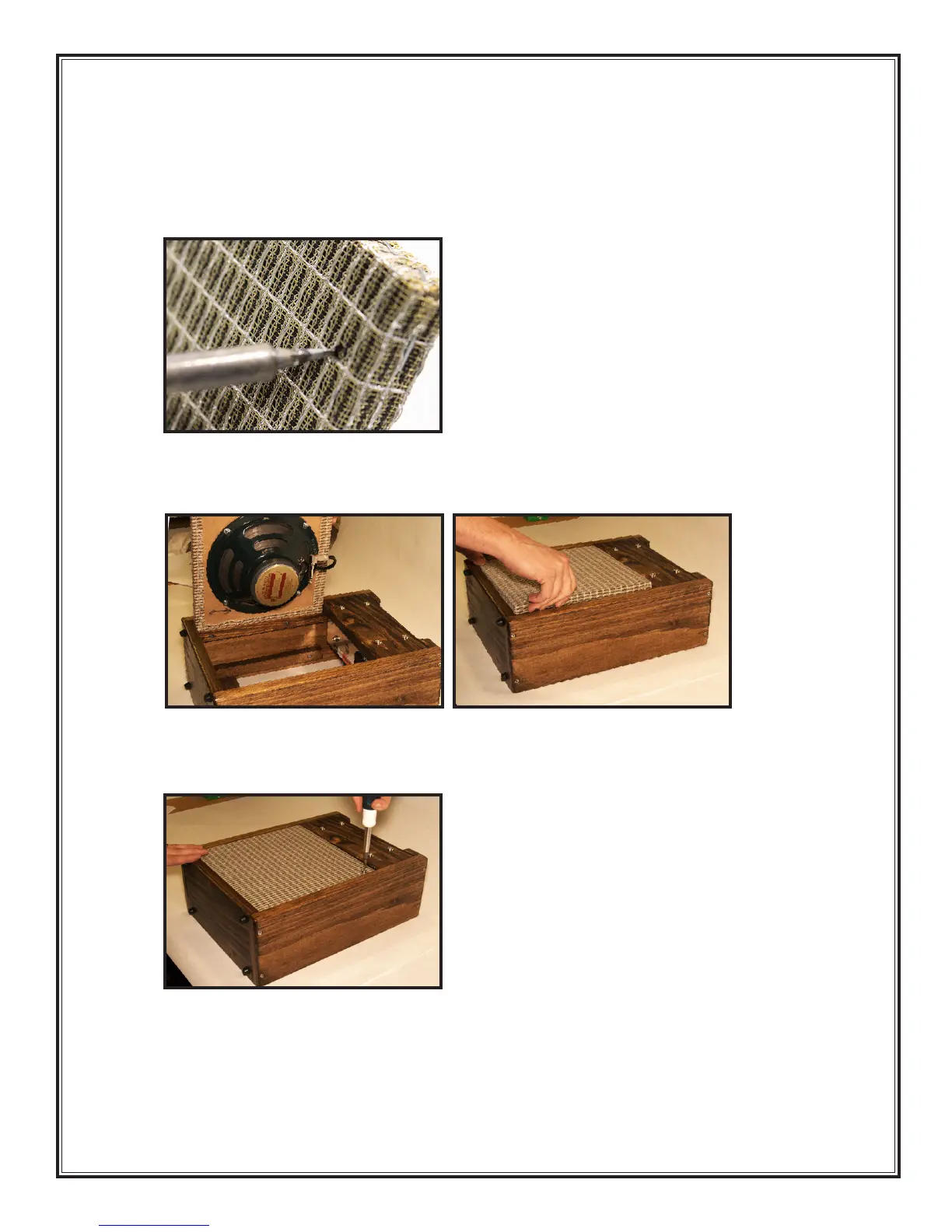 1. Use a hot soldering iron to melt a little hole through the grill cloth over the four mounting holes