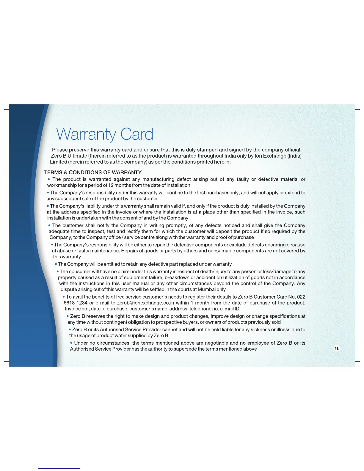 Zero B ultimate - Warranty Information; Terms & Conditions of Warranty; Availing Free Service