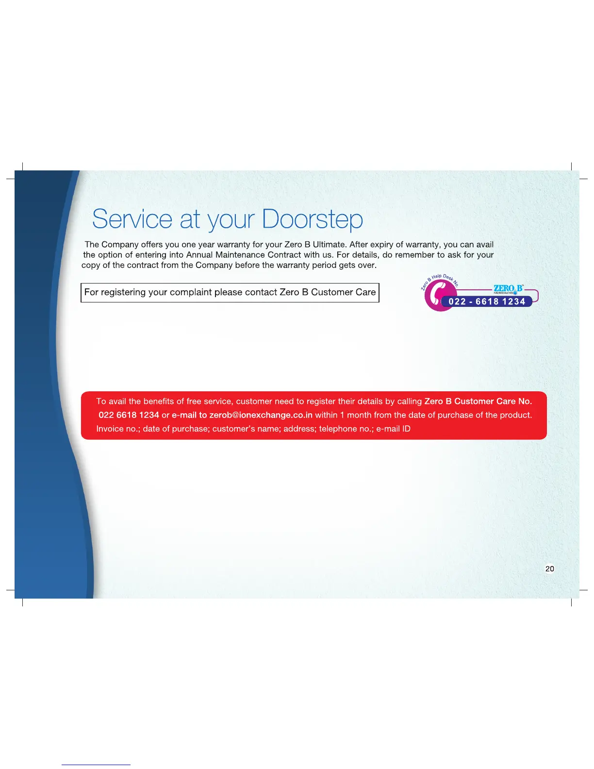 Zero B ultimate - Service at Your Doorstep; One Year Warranty; Annual Maintenance Contract; Registering Complaints