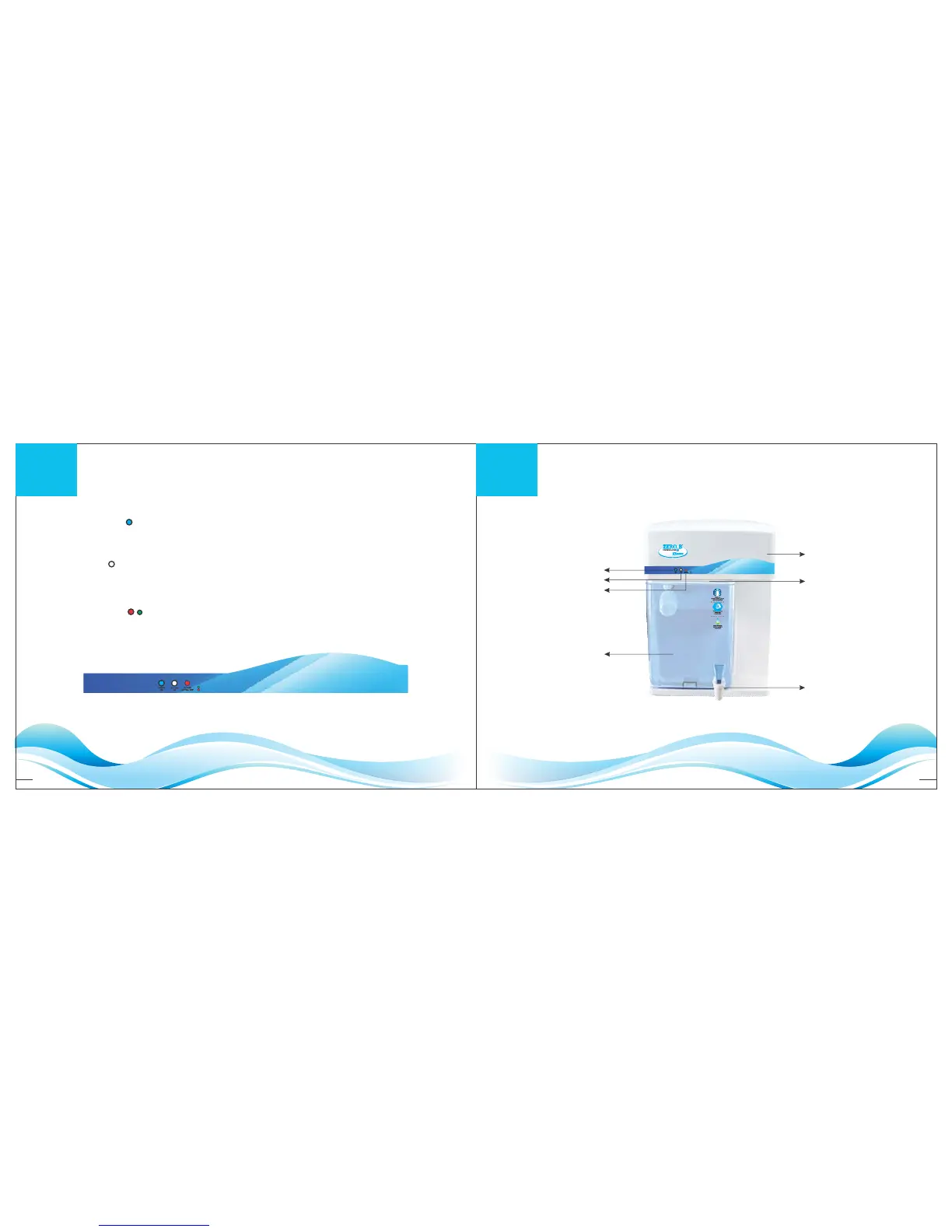A dual LED will glow indicating status of the UV purifier. A Green LED will get activated to UV pass status The same