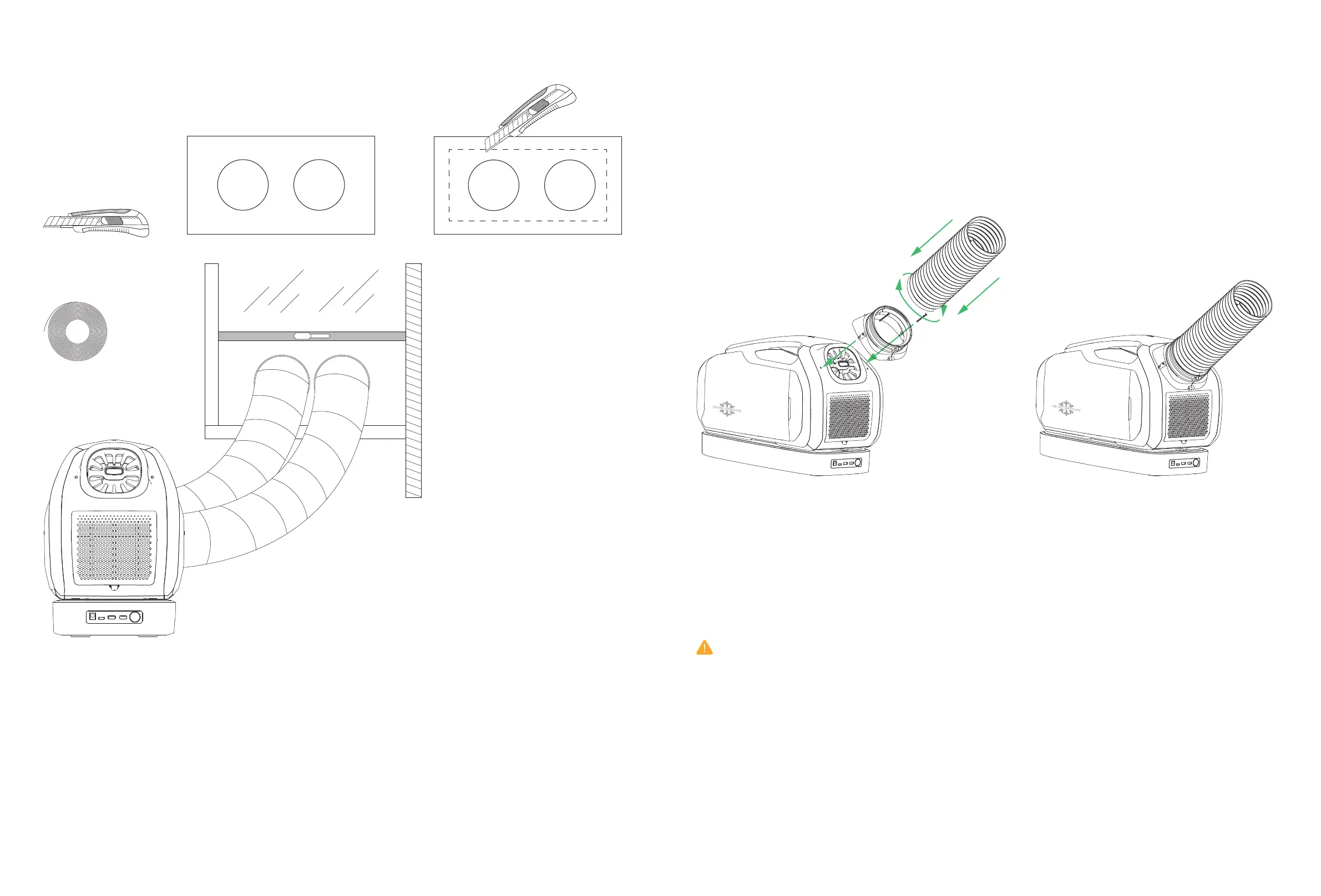 Choose the right angle and place it on the window. Close the window and insert the two exhaust pipes into the round