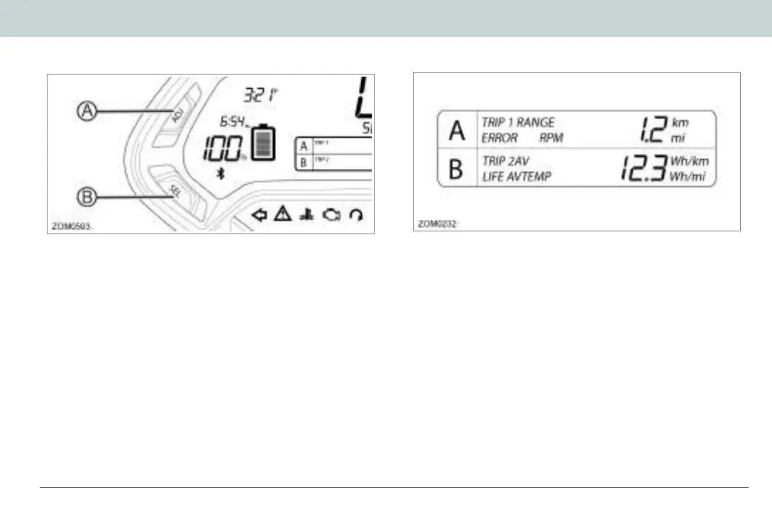 • Trip 1 Odometer - Displays individual trip mileage and is reset