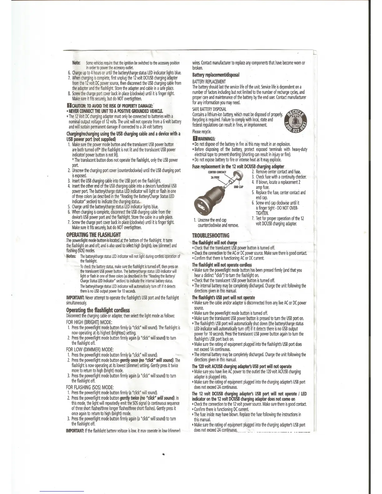 ZERO TRACE TL1KPZ - Operating the Flashlight; Operating the Flashlight Cordless; Troubleshooting and Maintenance; Troubleshooting
