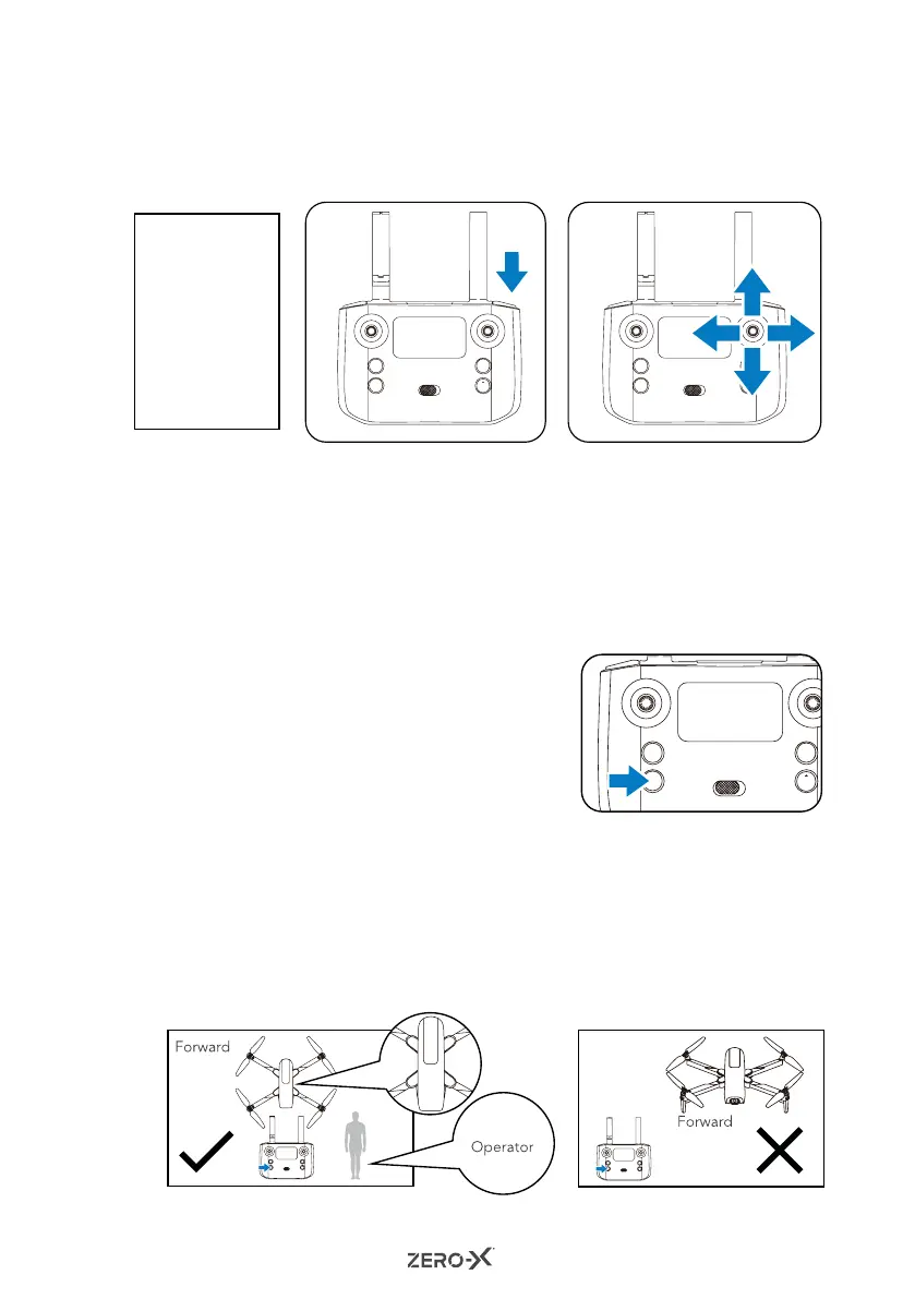 must point in the intended direction of flight; the back of the Drone should be