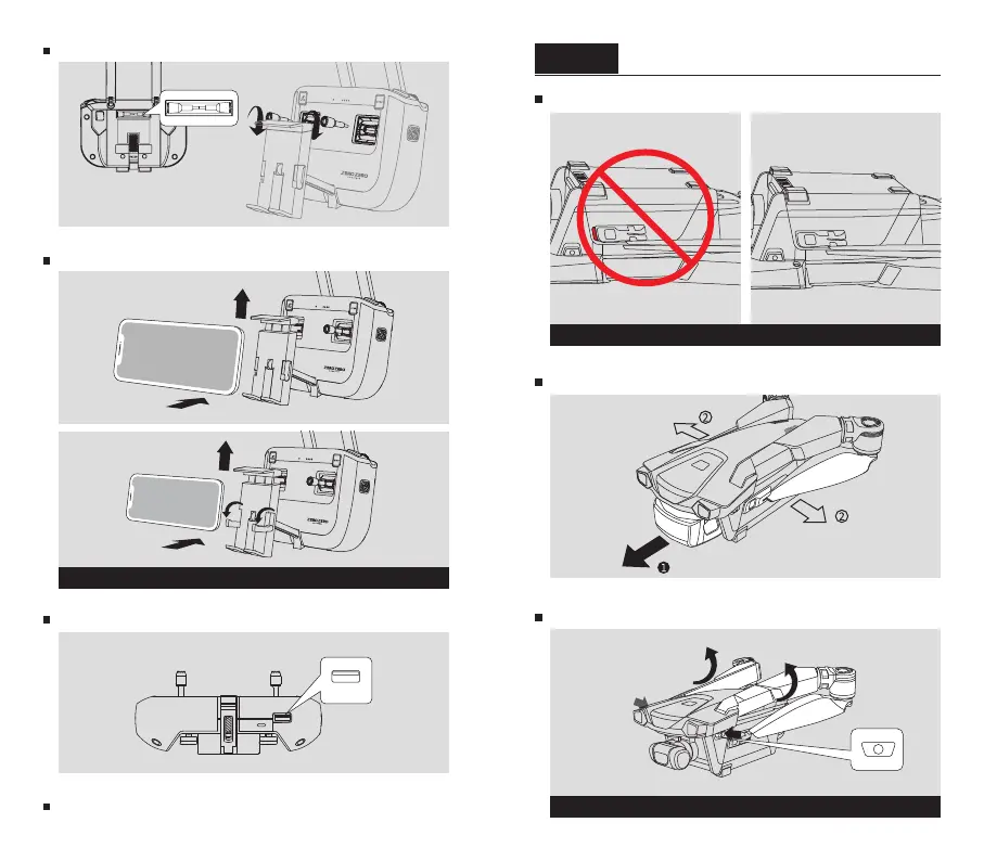 摘下云台保护罩,从电池卡扣中抽出桨叶