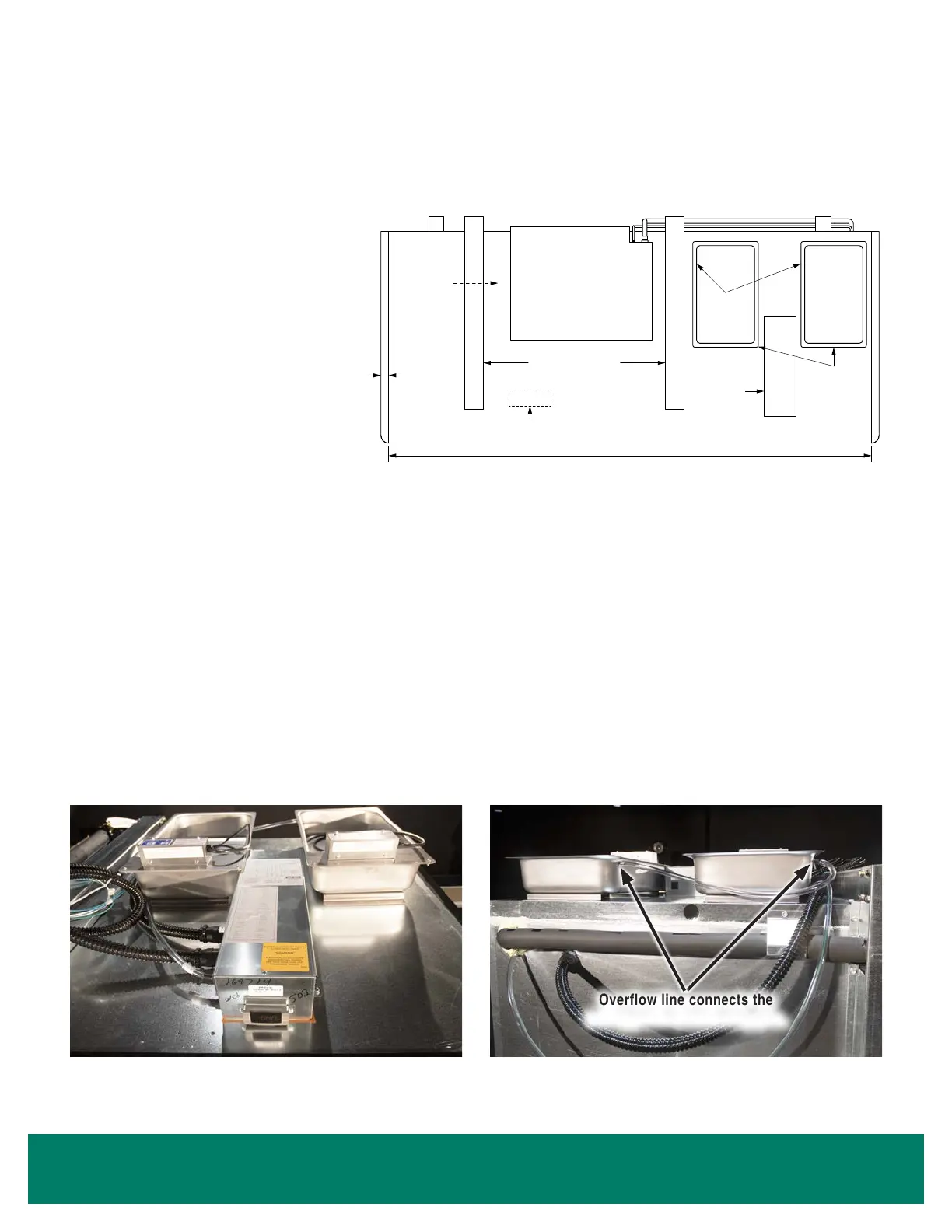 Note: The entire length of the overow line must stay below the top of the evaporation pans, and the tubing must not be kinked