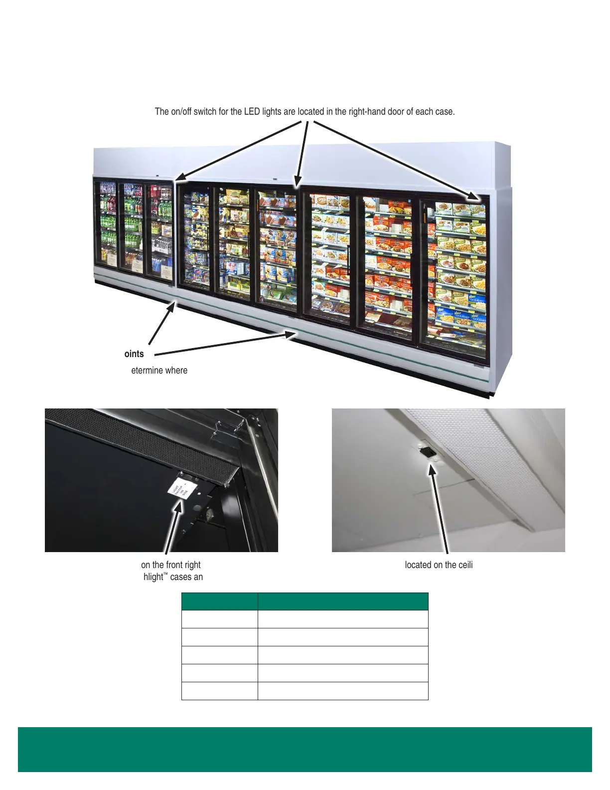 Note: To control lighting in a solid door case, use the toggle switch located in the right-hand door under the light bulb.