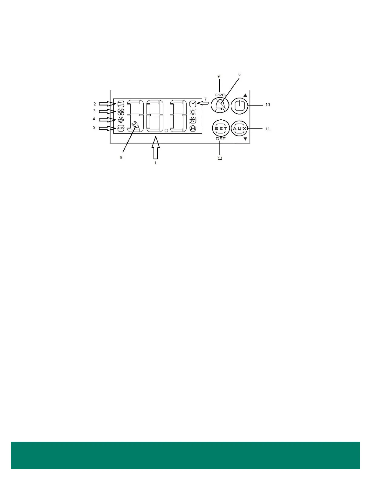 5. AUX output: When lit, this icon indicates AUX output 1 or 2 is active. It ashes when anti-sweat heater function is active.