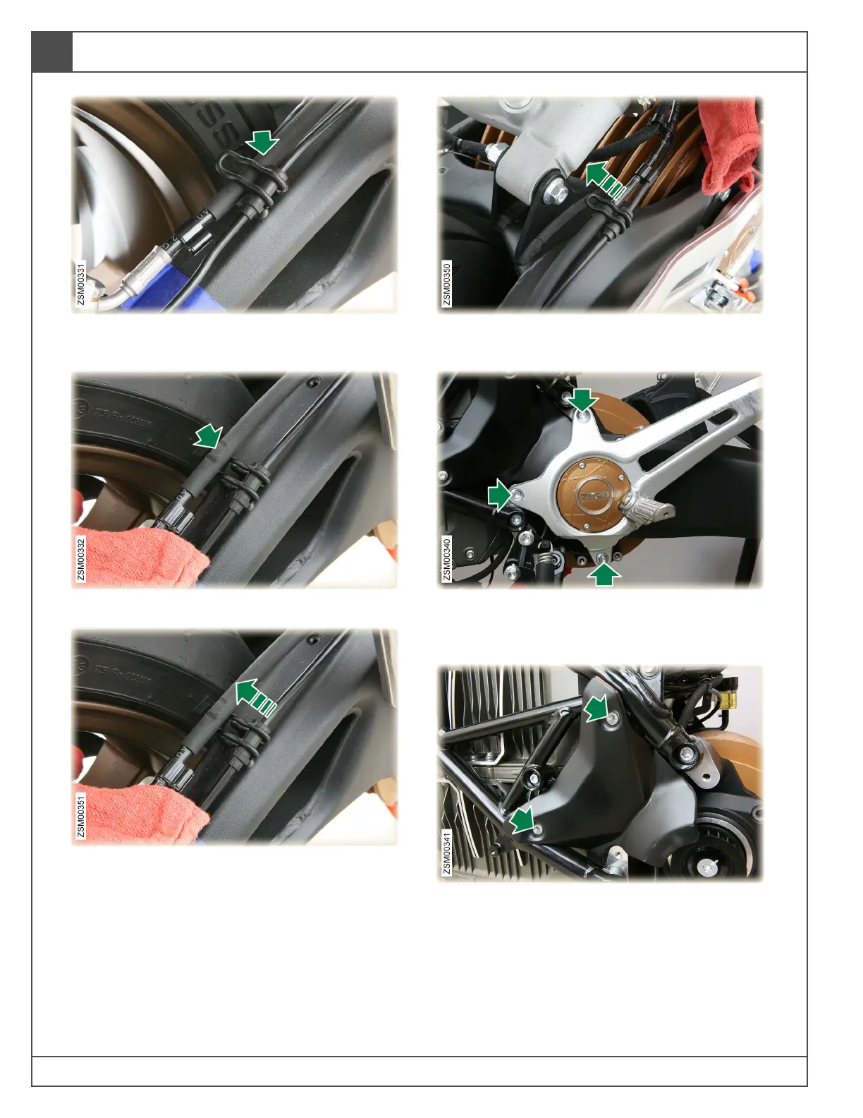 14. Position the rear brake hose on top of clip.