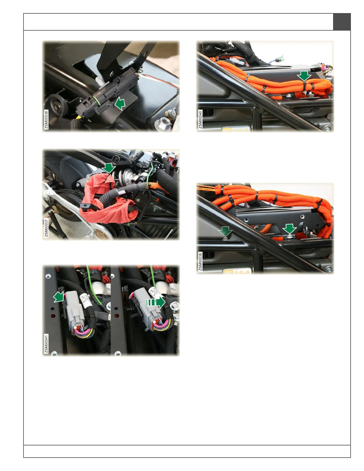 18. Cut cable tie securing high voltage harness to