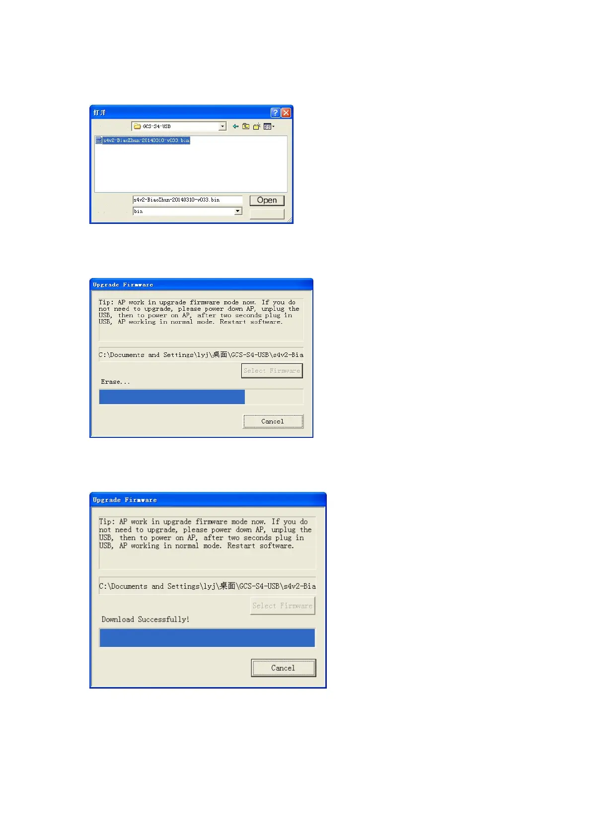 5)Click“Open”button,selectupgradeprocedurefile“s4v2BiaoZhun20140115v021.bin”
