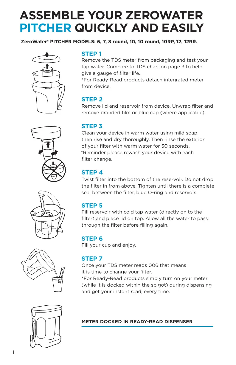 ZeroWater® PITCHER MODELS: 6, 7, 8 round, 10, 10 round, 10RP, 12, 12RR. ZeroWater® DISPENSER MODELS: 20, 22RR, 30, 32RR, 40, 52RR.