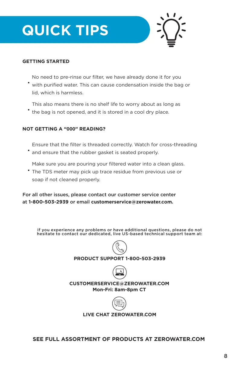 at 1-800-503-2939 or email customerservice@zerowater.com.