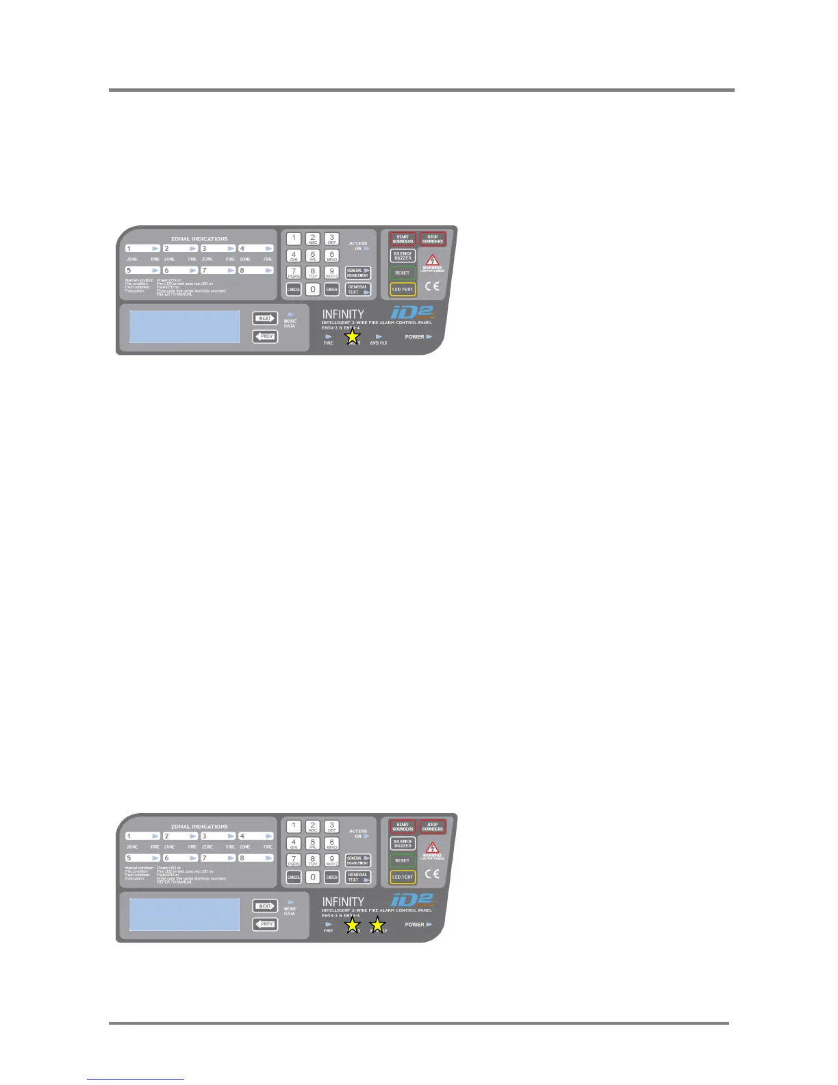 The System Fault LED lights if the Panel’s micro-processor has encountered a problem and has rebooted. This does not occur during