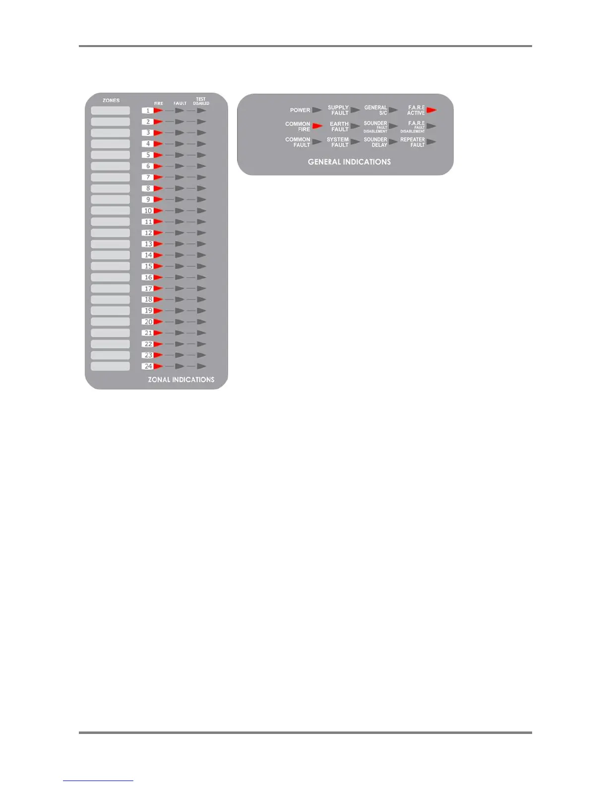 Light the General Fire LED and appropriate Zone