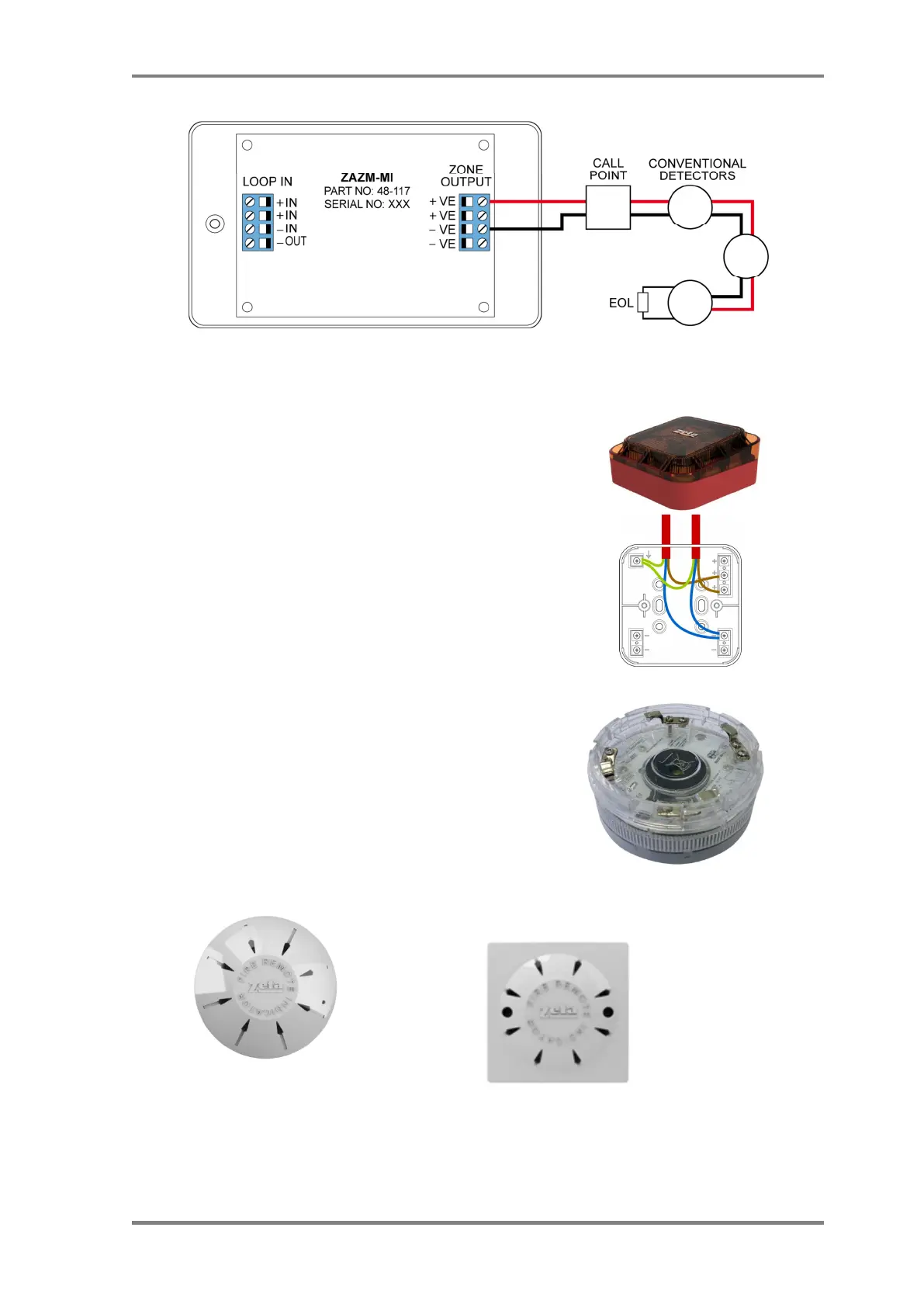 The ZAZM powers the conventional zone from the addressable systems loop, so no external power supply is required. The