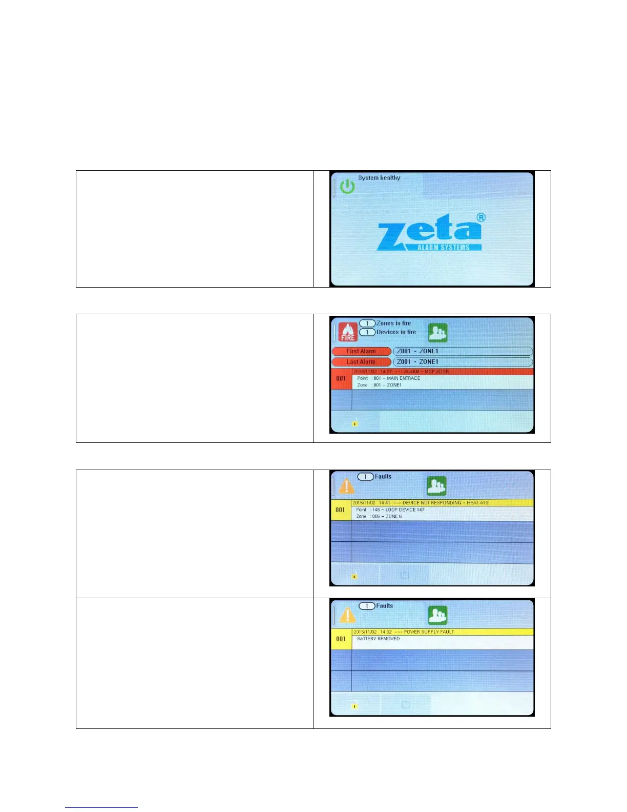 During Normal operation the panel will be in one of the following states depending on the status of the devices connected to the