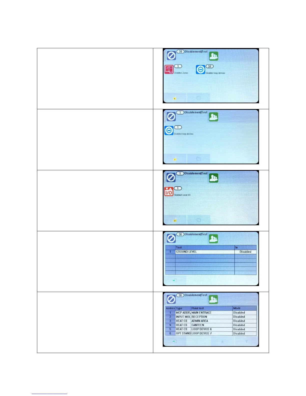 Disablements are indicated with the general disablement LED,