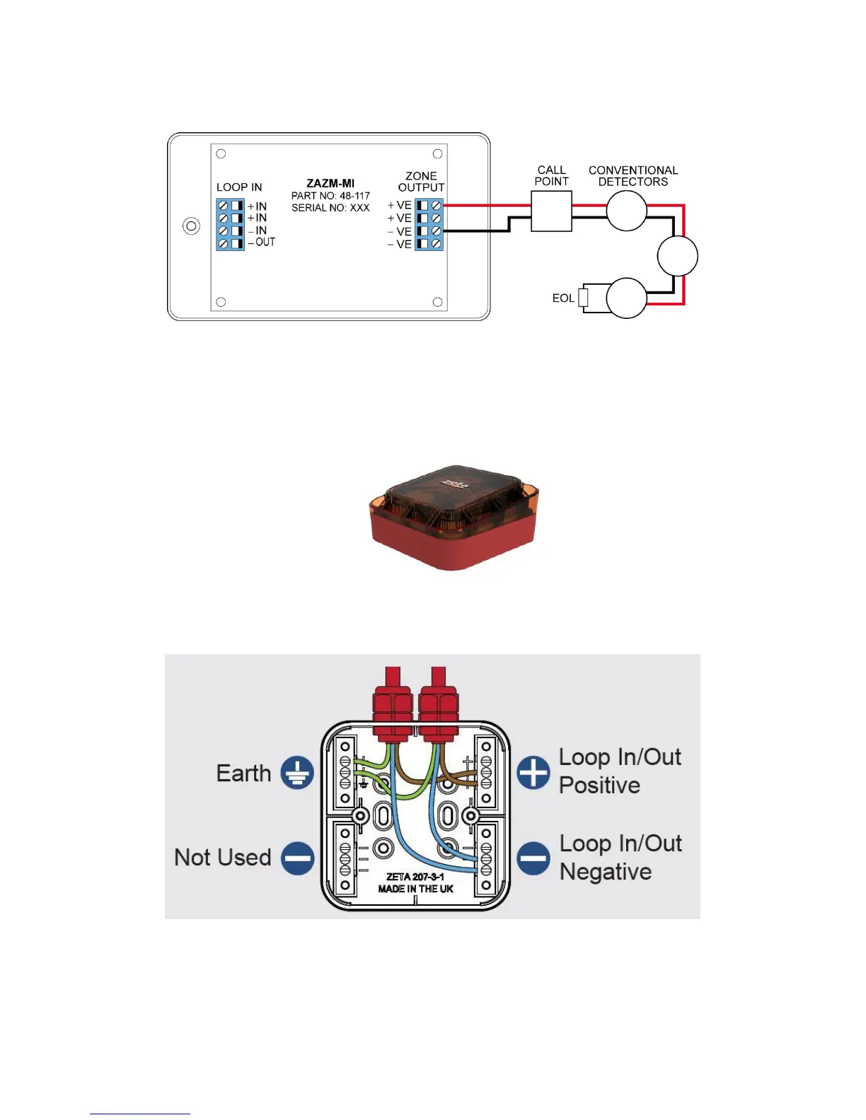 The ZAZM powers the conventional zone from the addressable systems loop, so no external power supply is required. The EOL for