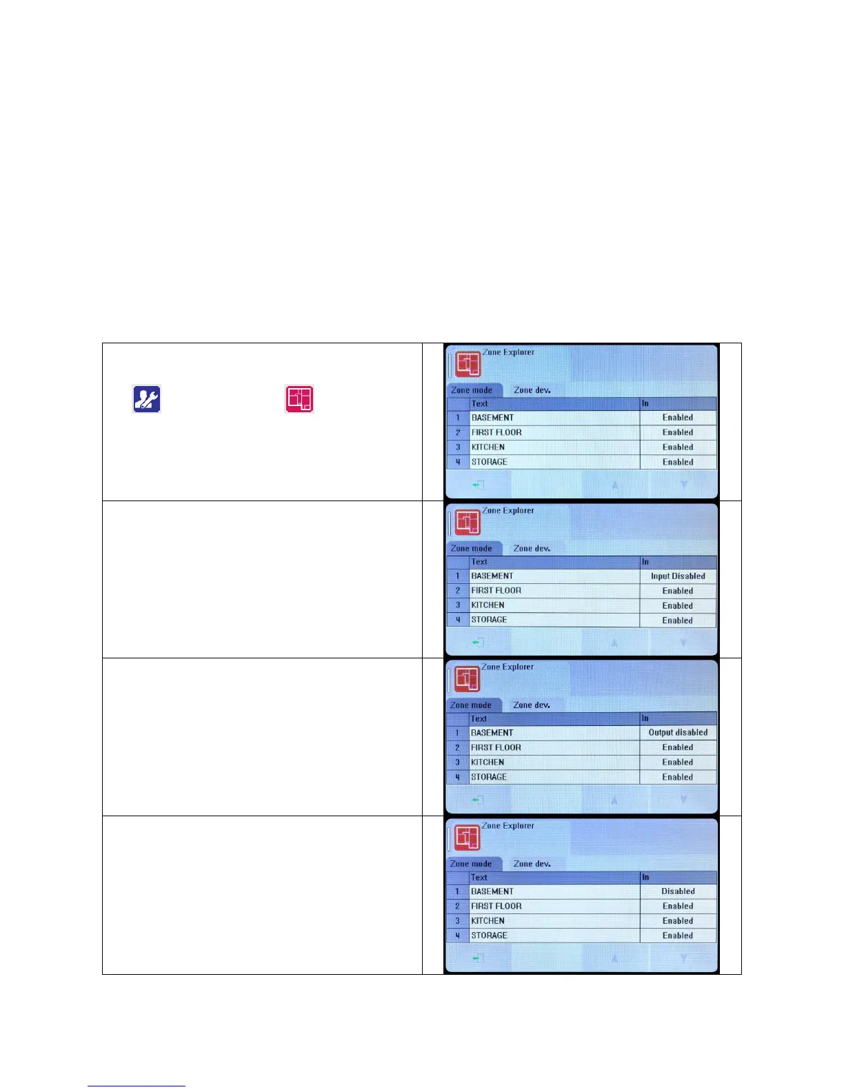 Select the Zone to Disable by pressing the “In” field. The status