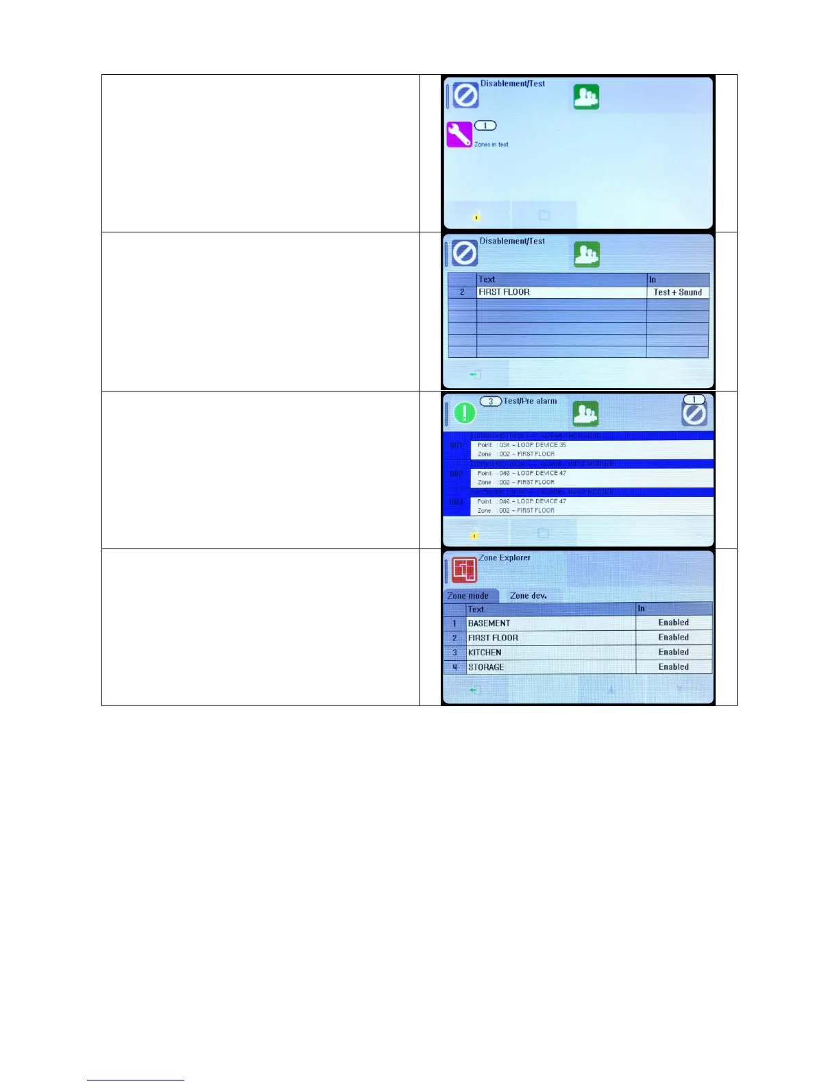 To view which zones are in test mode, press the zones in test
