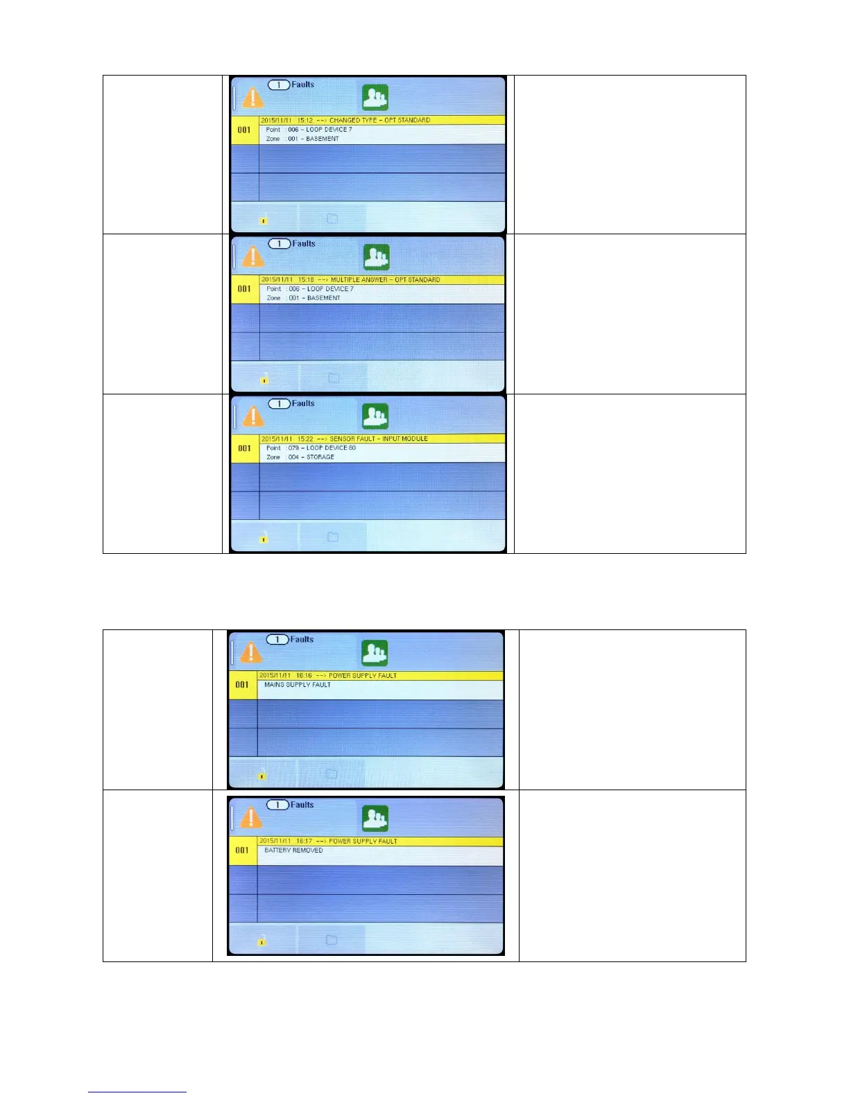 The fault message indicates whether the