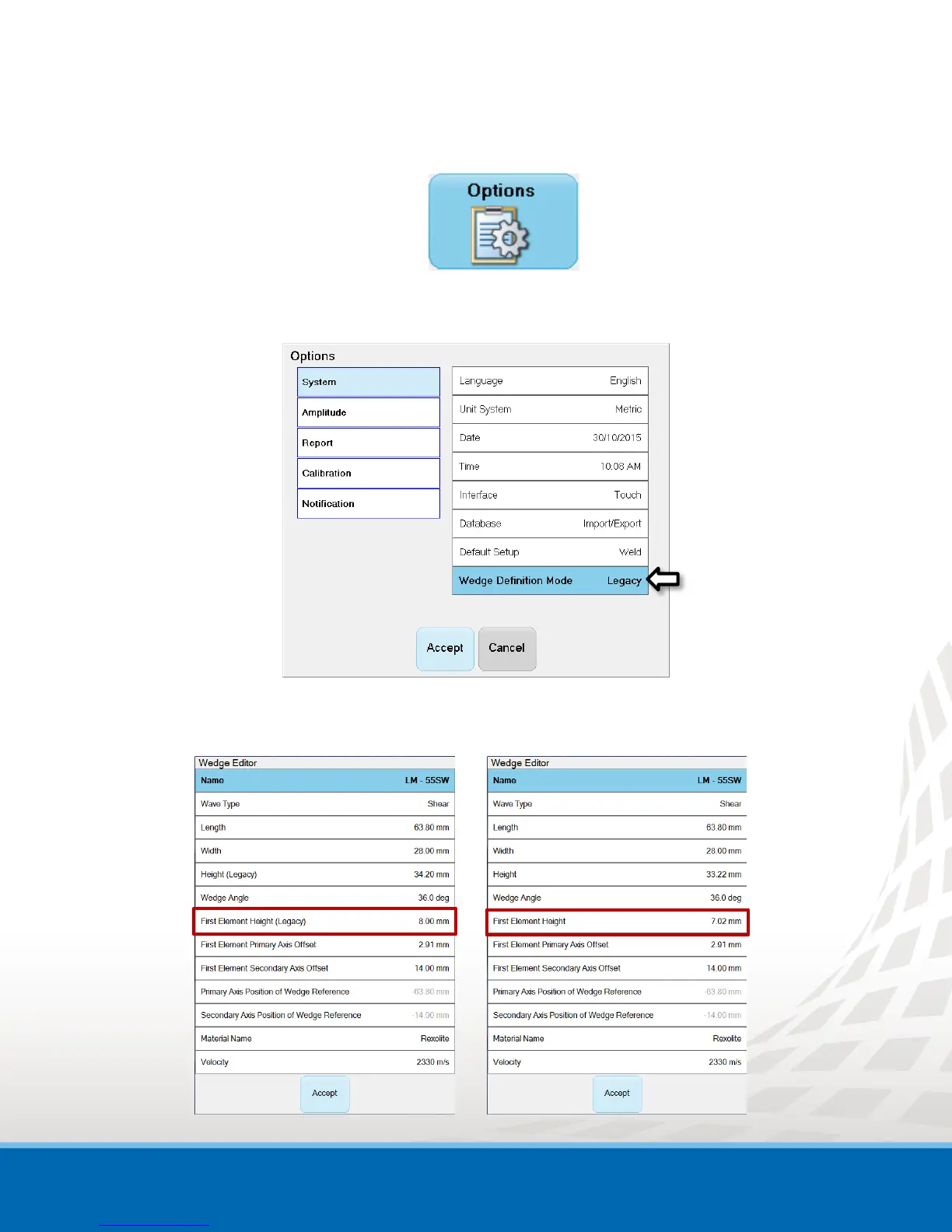 2. In the Options window, set the Wedge Definition Mode to Legacy or Default.