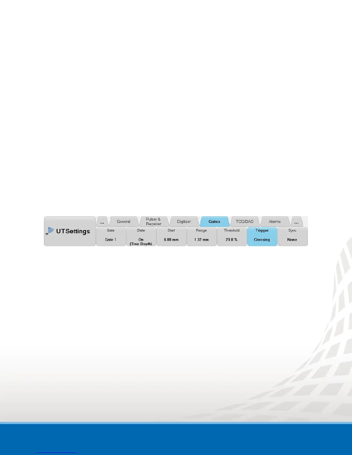 Figure 2-1 UT Settings menu - Gates Tab
