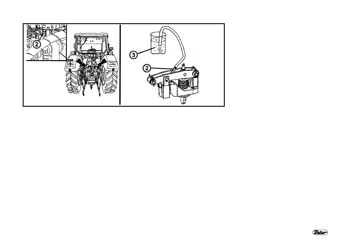 2. Slide a hose onto the bleeding screw (2) of the brake cylinder after prior removal