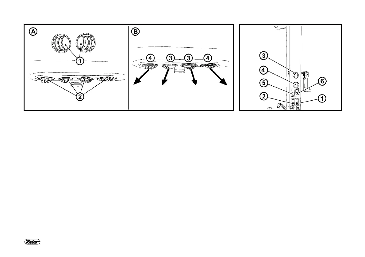 A - Adjustable heating air outlets (2) and ∗air-conditioning (1).