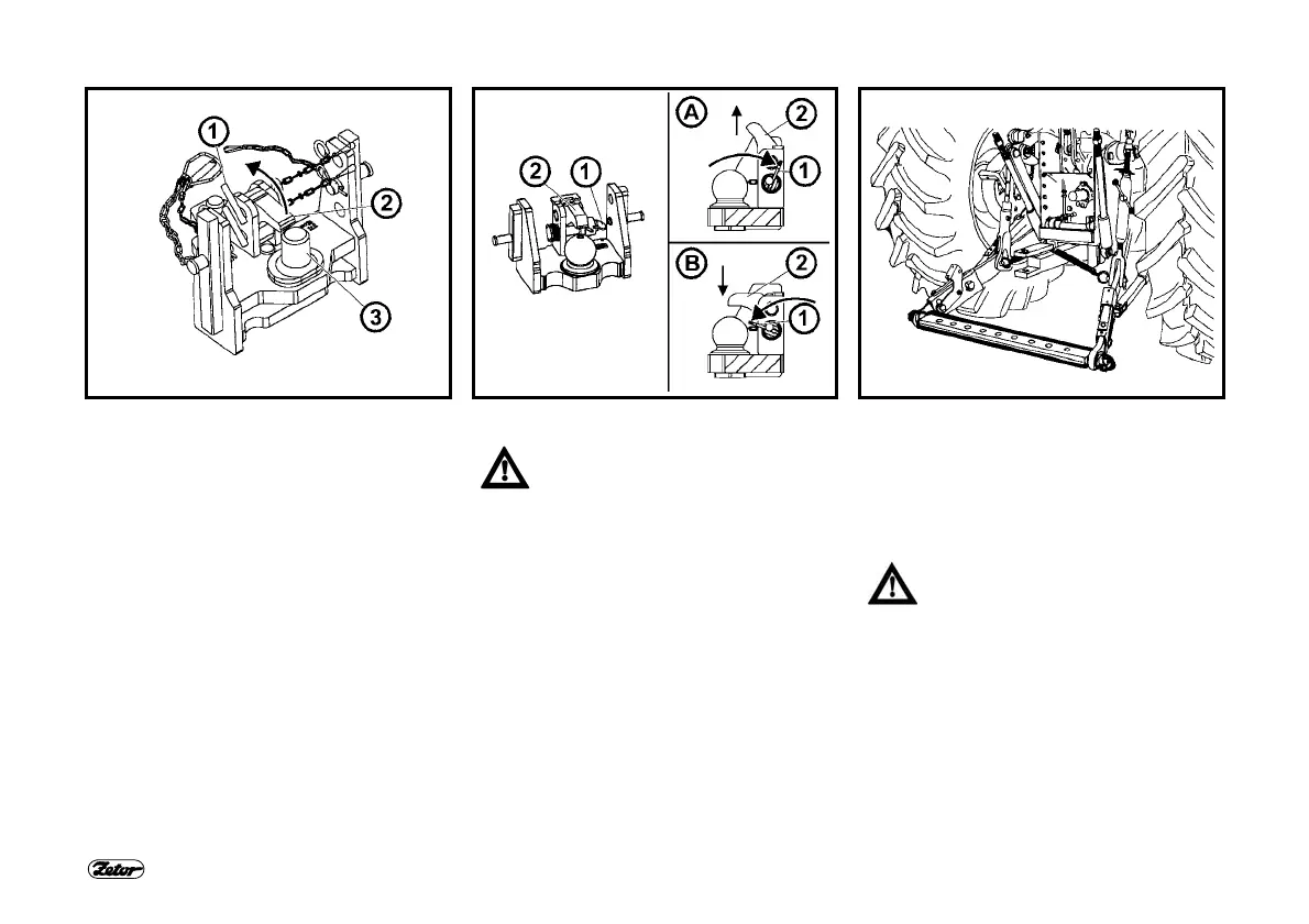 Fig. (B) – Locking of the hitch. (B):