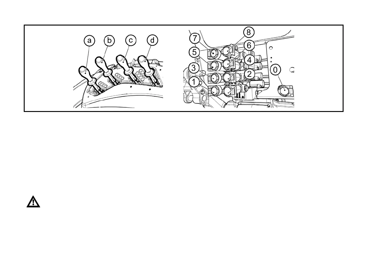 levers (a), (b), (c) and (d) - quick couplers (1), (2), (3), (4), (5), (6), (7) and (8)