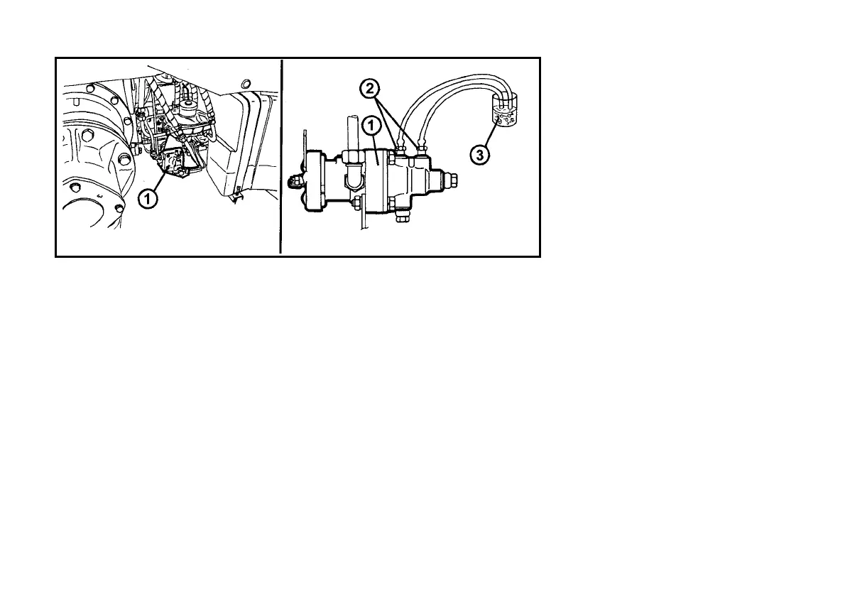 2. Remove caps on bleeding screws (2) of the trailer control valve (1), located on the