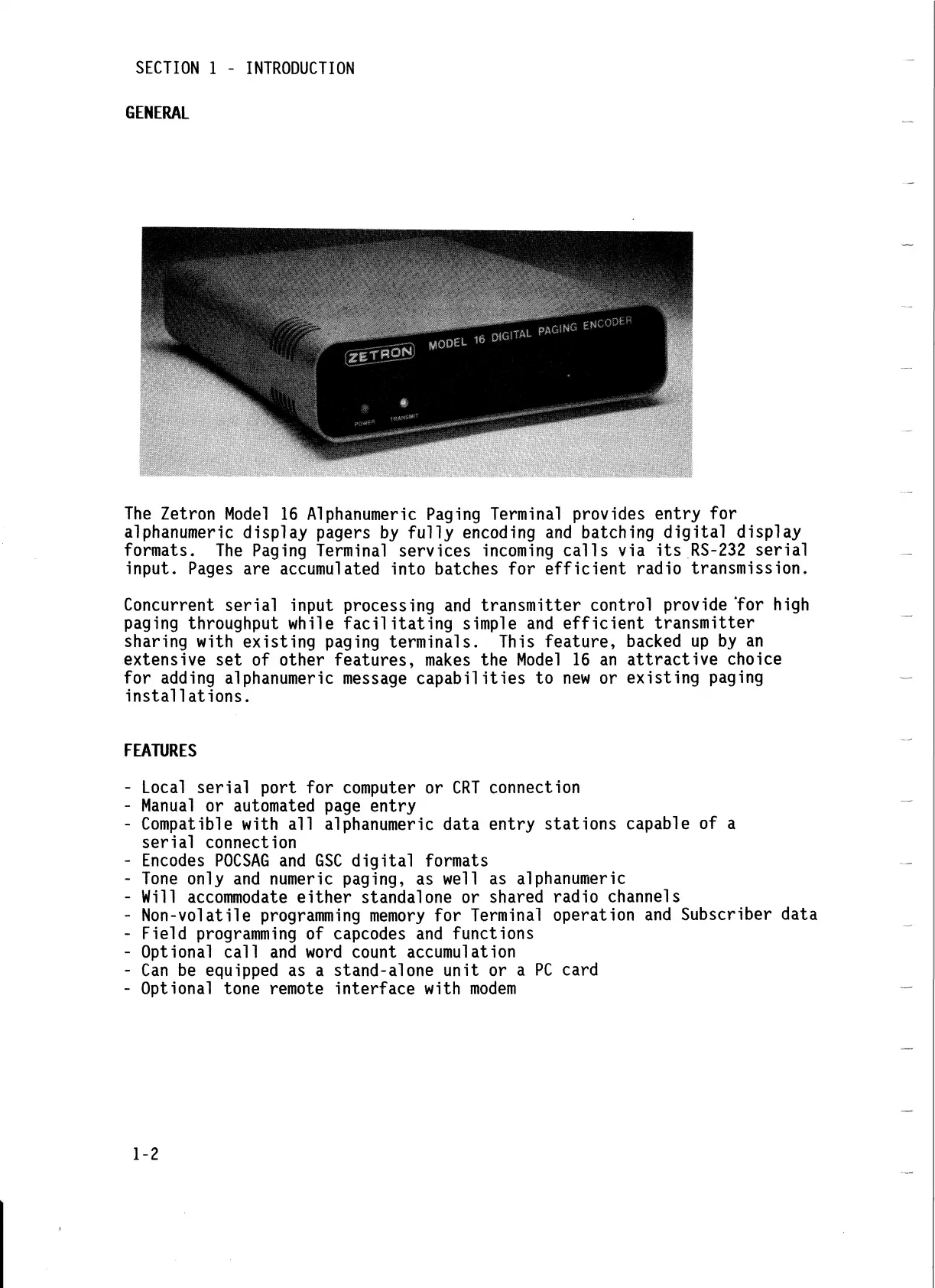 The Zetron Model 16 Alphanumeric Paging Terminal provides entry for