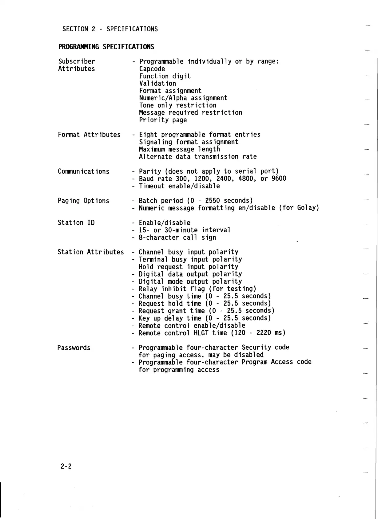 - Baud rate 300, 1200, 2400, 4800, or 9600