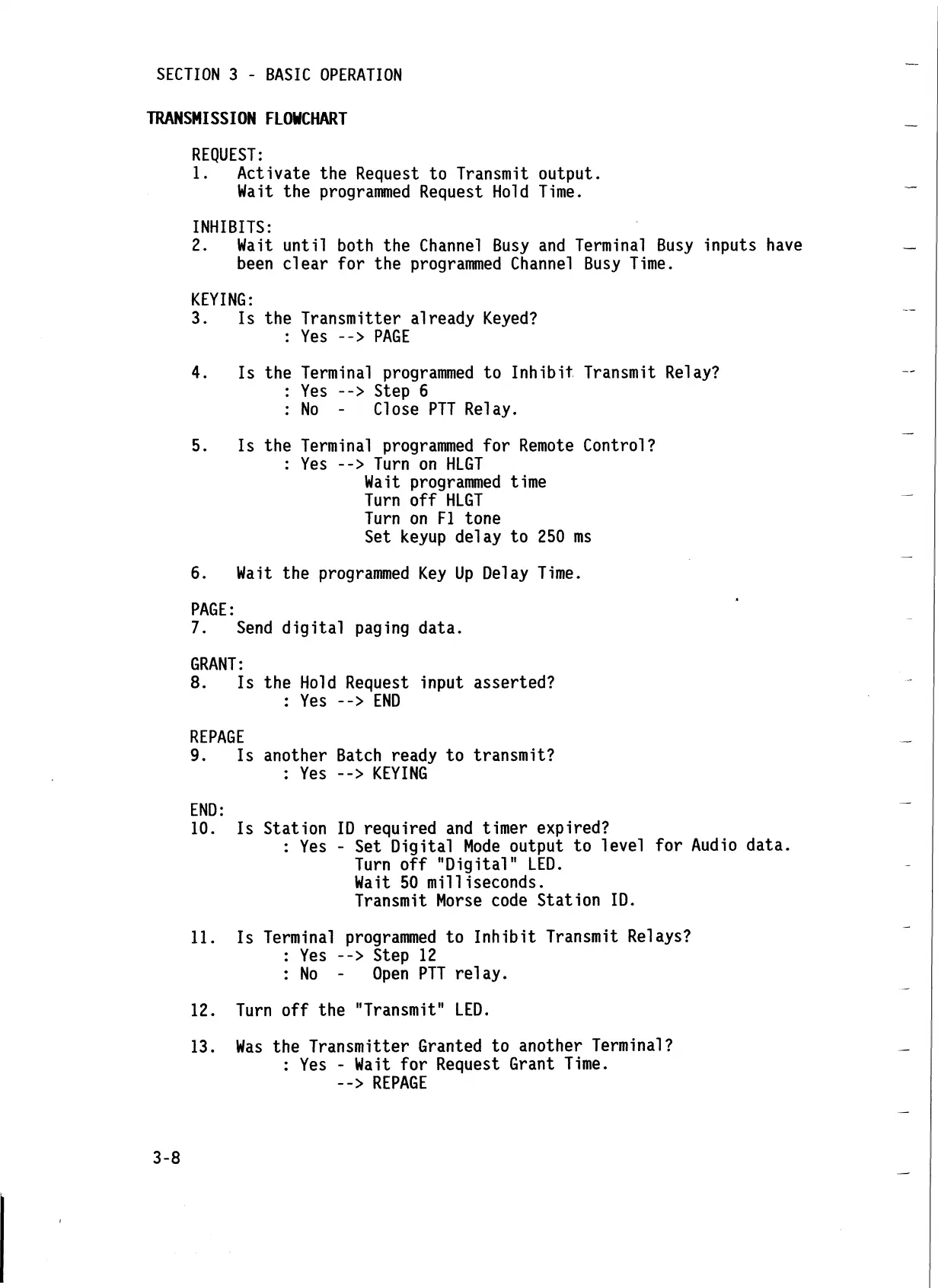 4. Is the Terminal programmed to Inhibit Transmit Relay?