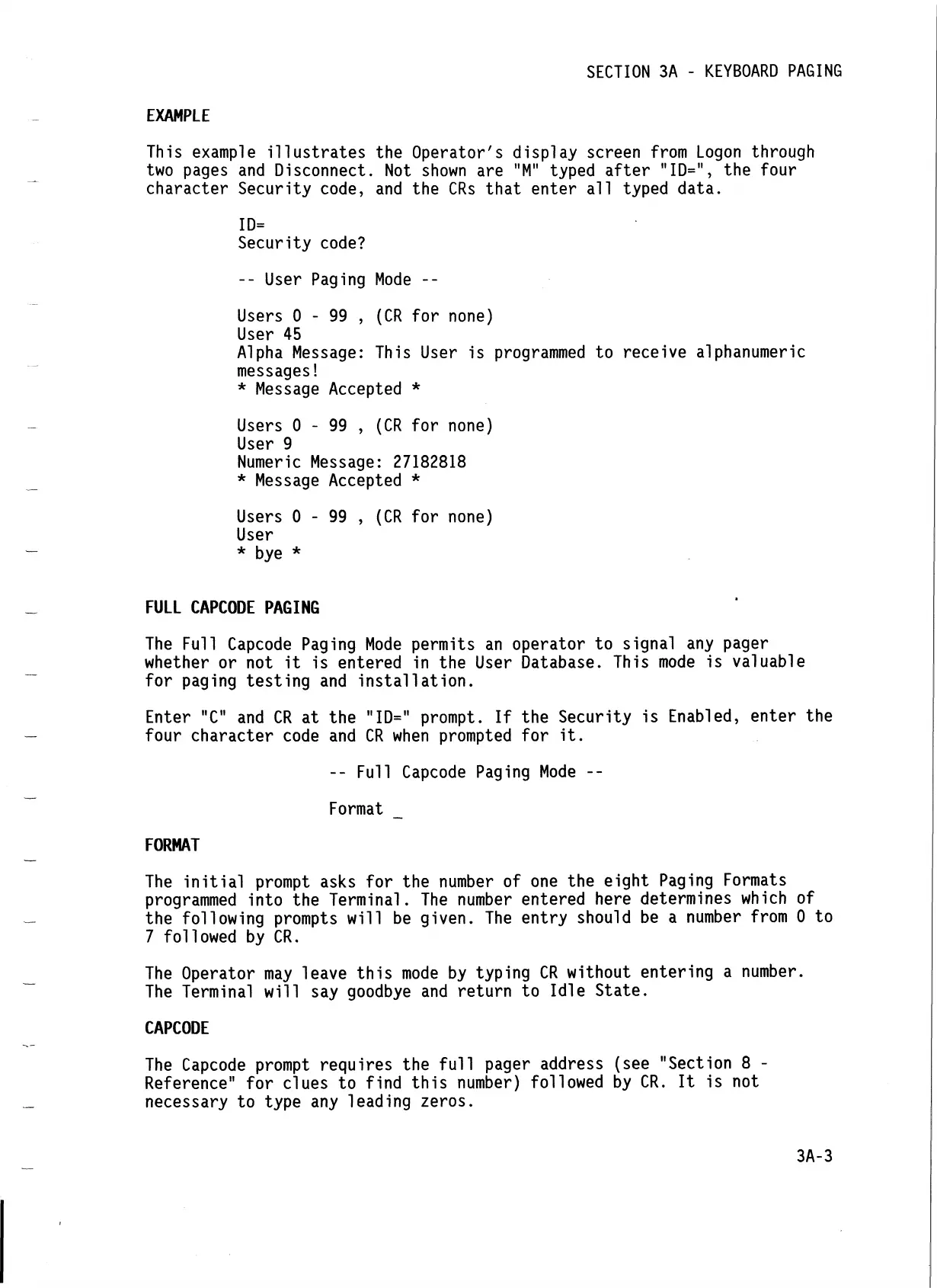 The Full Capcode Paging Mode permits an operator to signal any pager