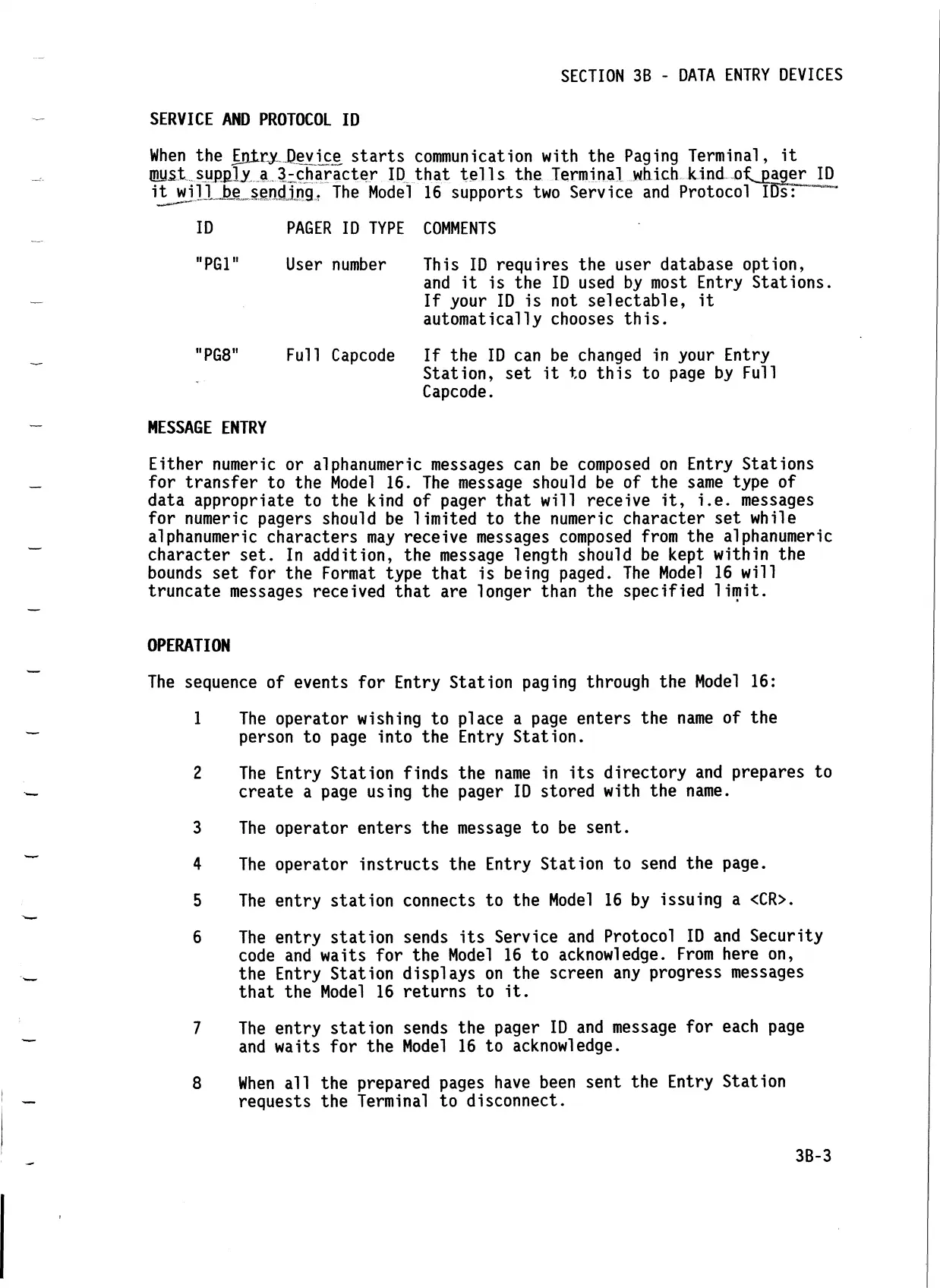 (Mjst supply a 3-character ID that tells the Terminal which kindolL pager ID