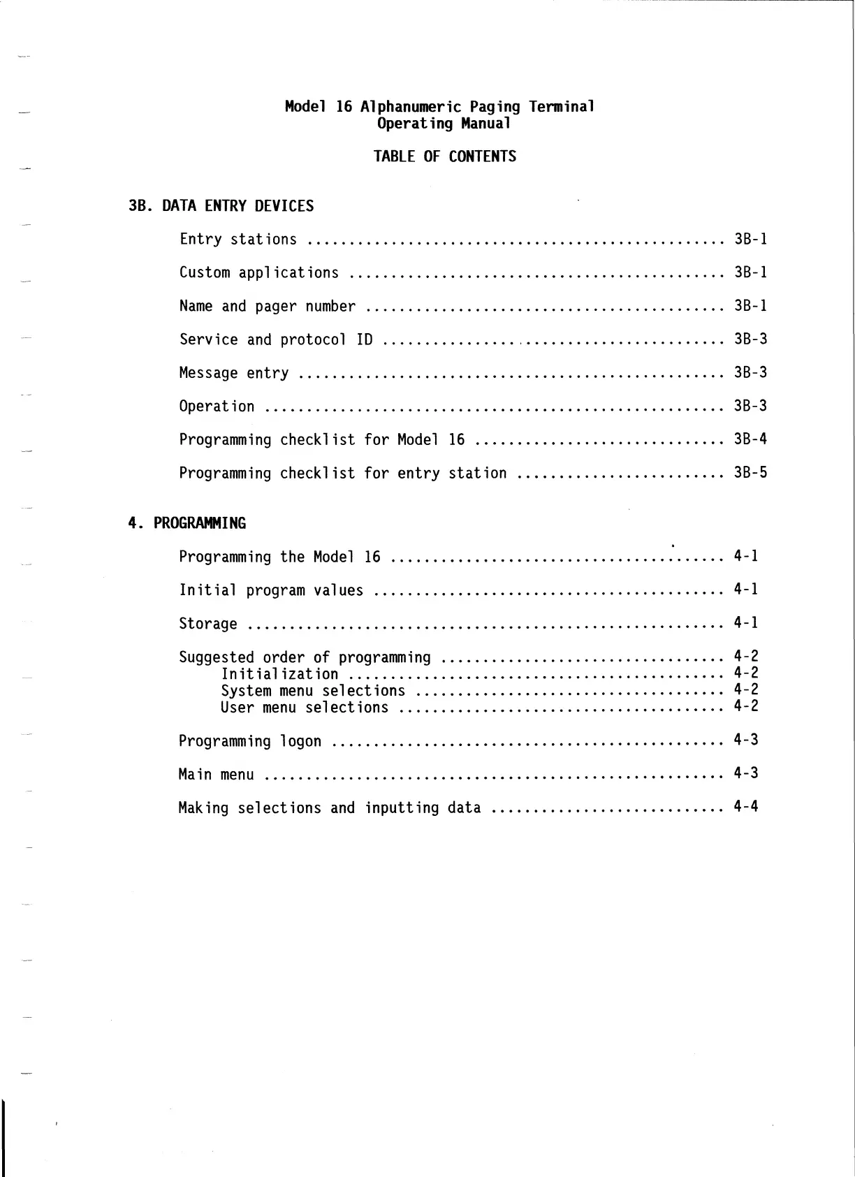 Programming the Model 16 ......................................... 4-1
