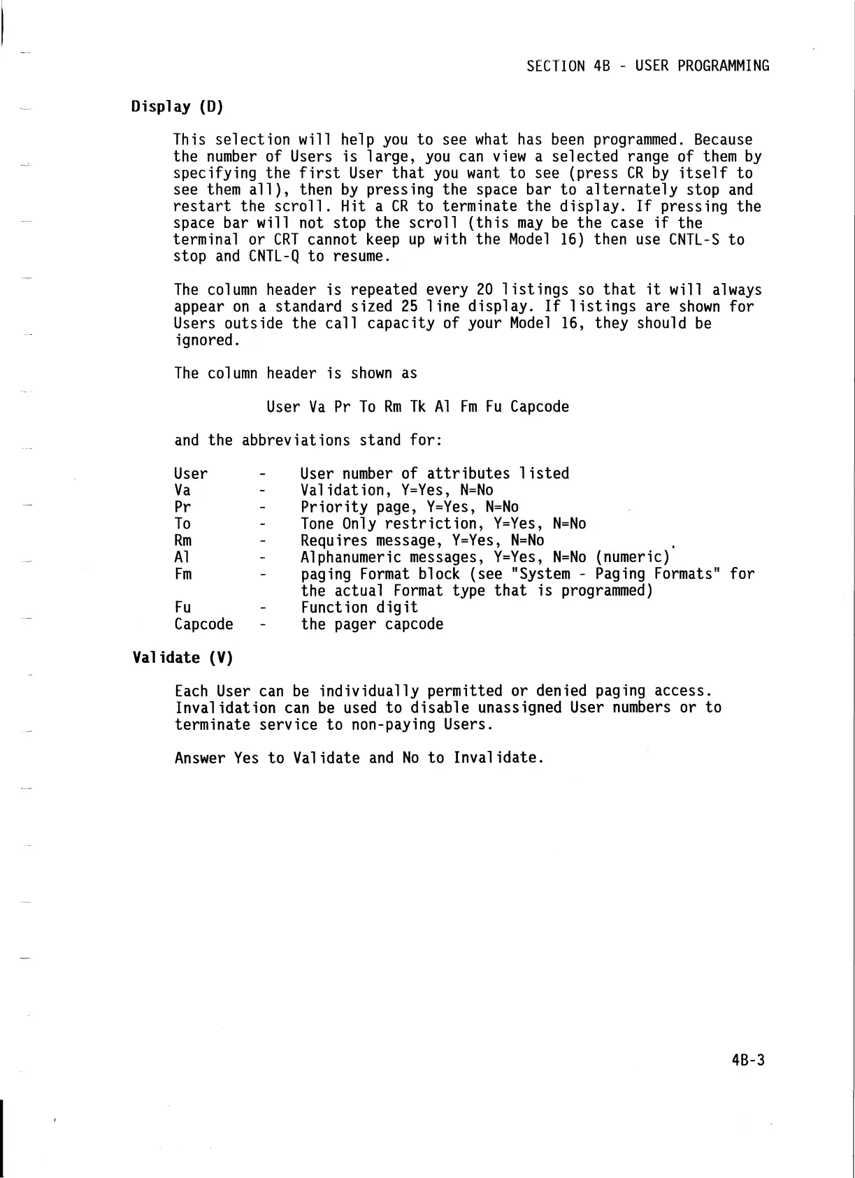SECTION 4B - USER PROGRAMMING
