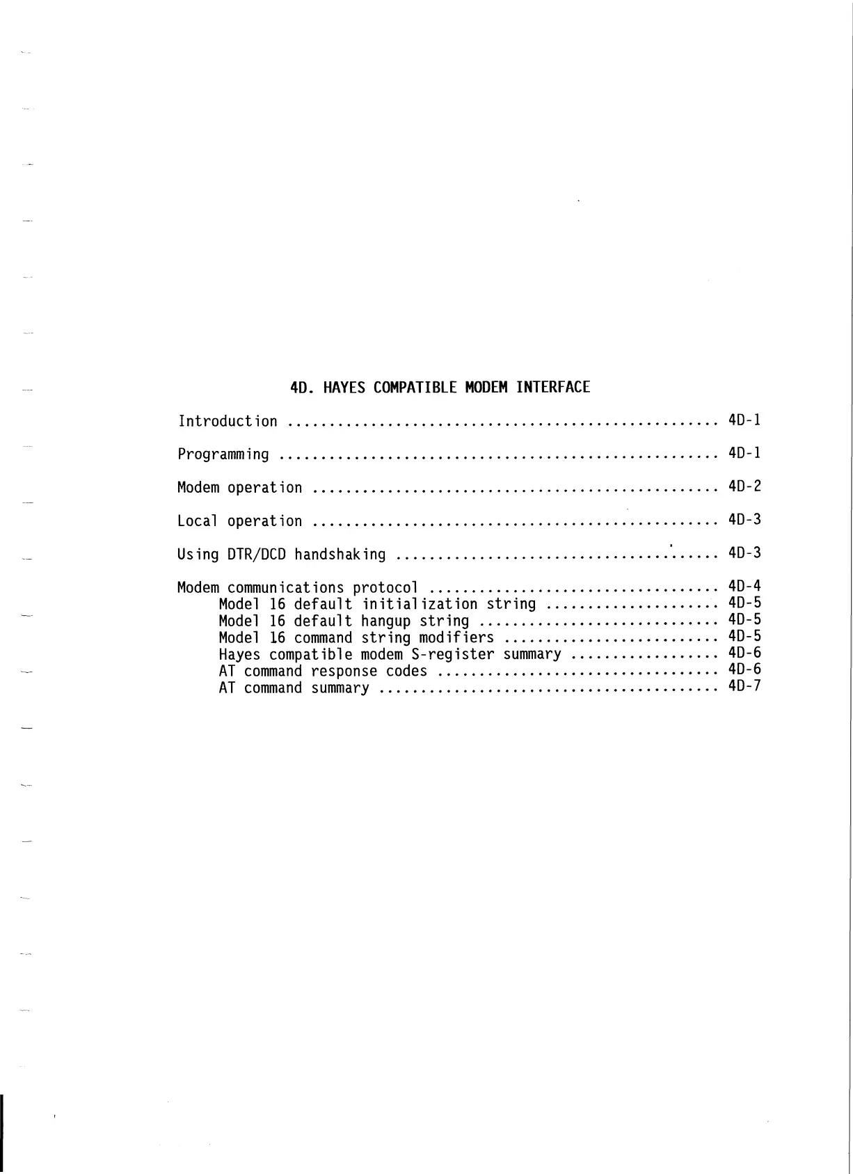 Hayes compatible modem S-register summary .................. 4D-6