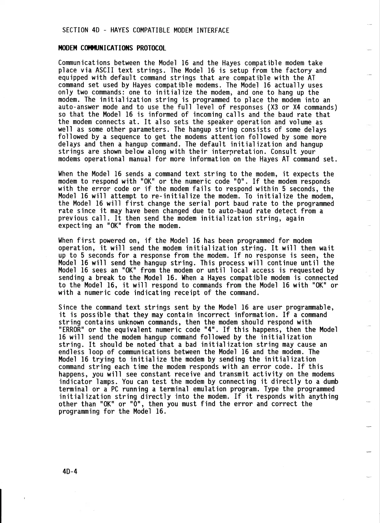 SECTION 4D - HAYES COMPATIBLE MODEM INTERFACE