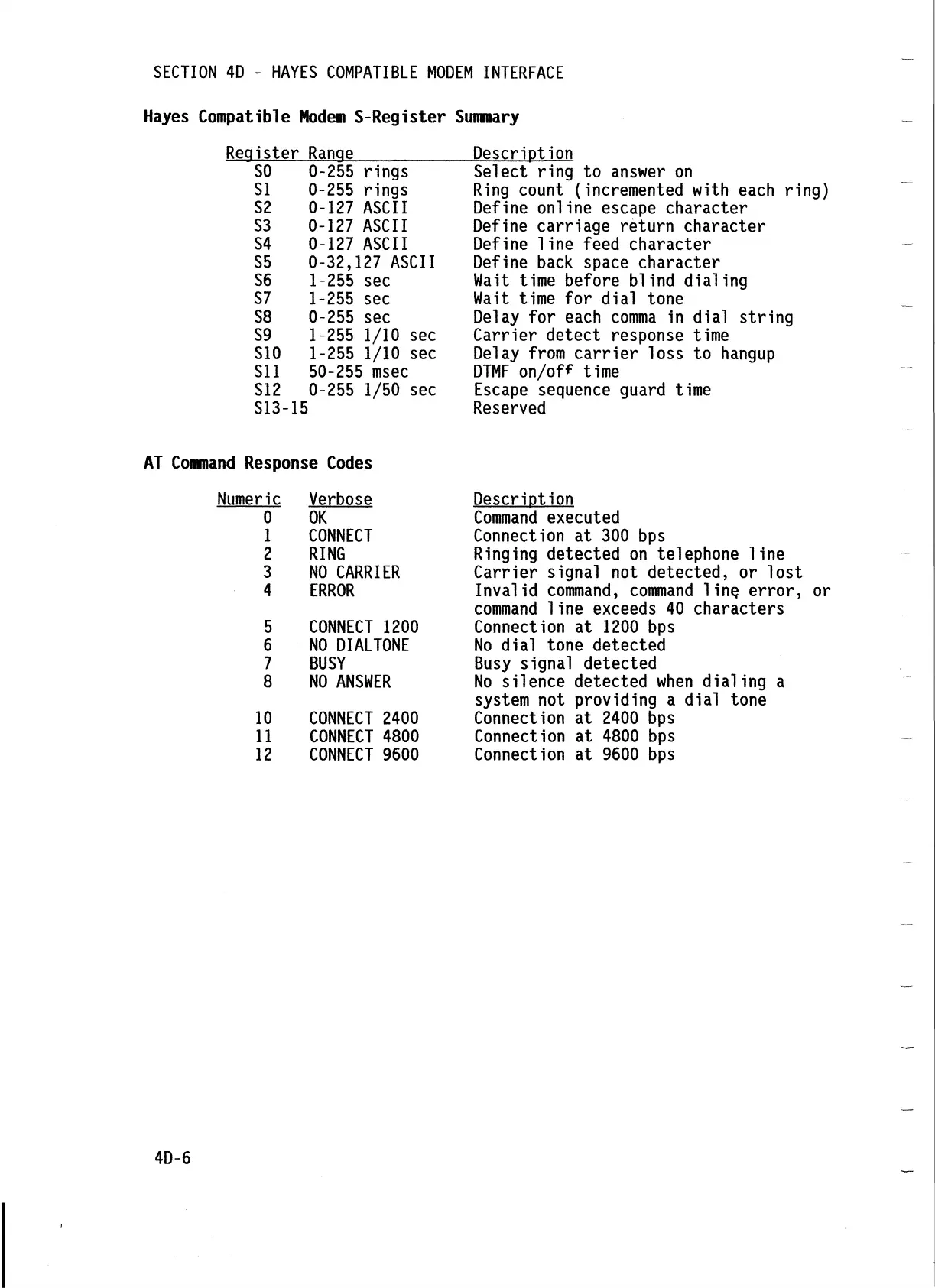 SECTION 4D - HAYES COMPATIBLE MODEM INTERFACE