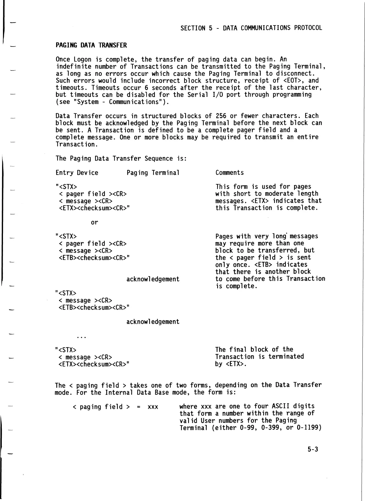 SECTION 5 - DATA COMMUNICATIONS PROTOCOL