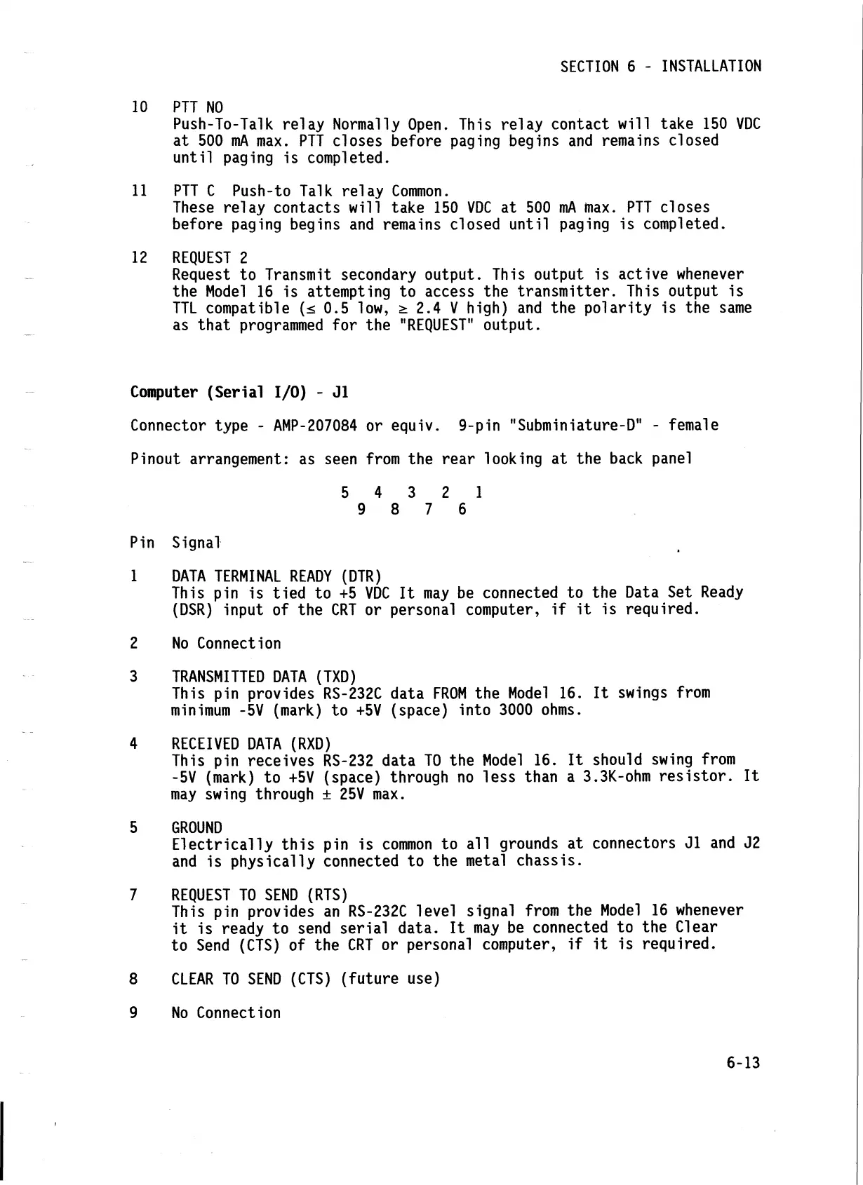 This pin provides an RS-232C level signal from the Model 16 whenever