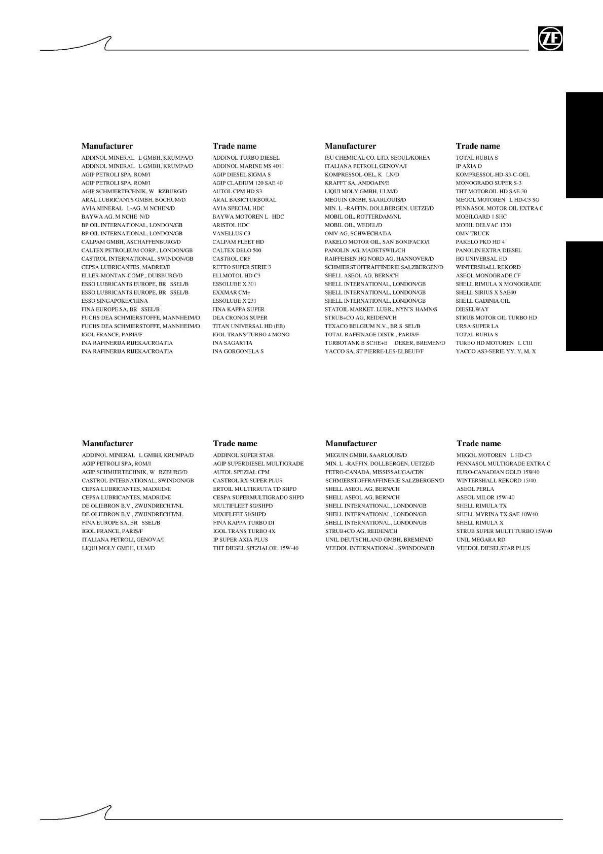 ZF 280 IV - Lubricant Class 04 B; Lubricant Class 04 C