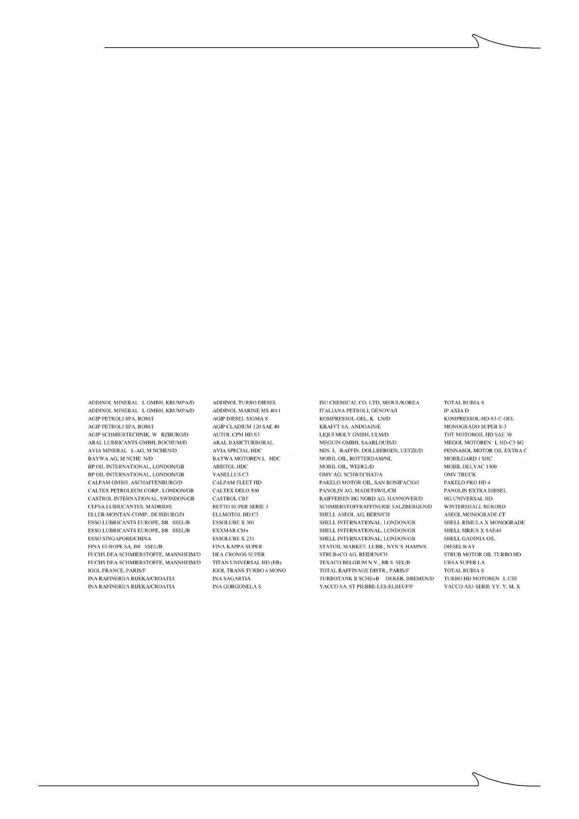 Viskositätsklasse: SAE 30, auch SAE 40 in Tropländern oder wenn der Ölsumpf + 80°C überschreitet.