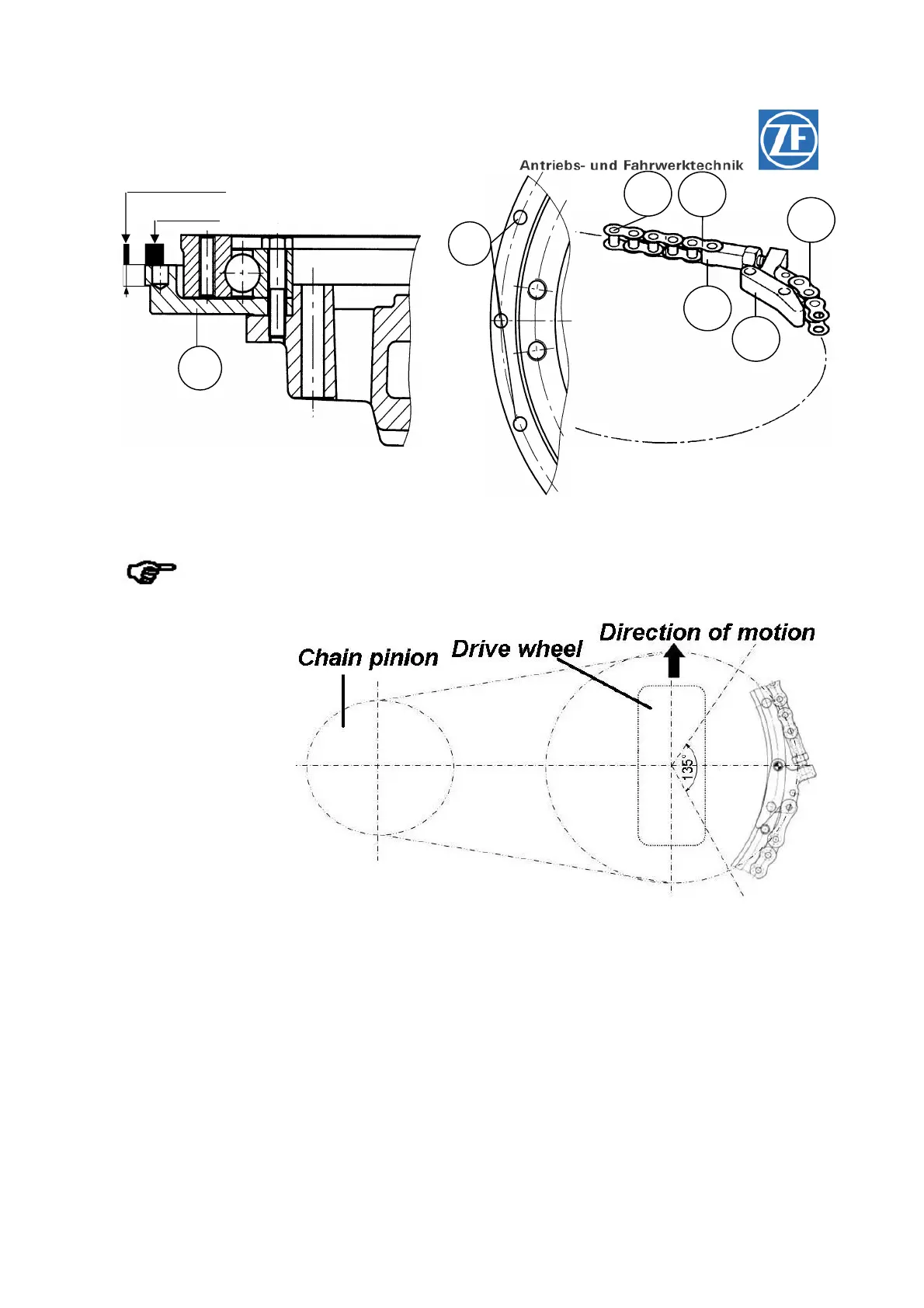 1. The centering and supporting face for the chain flange has to be clean.